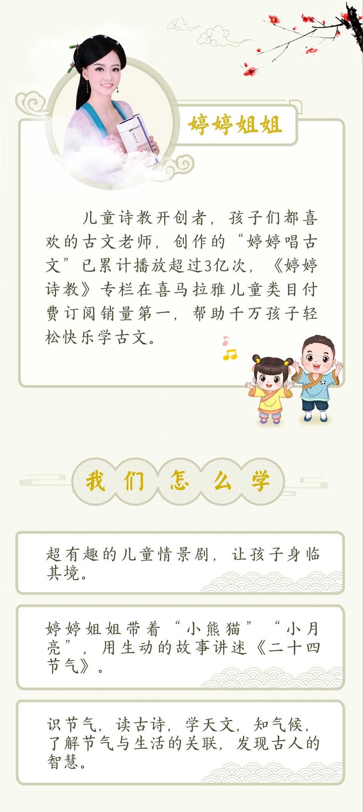 婷婷姐姐,孩子们最爱的家庭教师,已将百余首古诗词谱曲成歌,并广为流传。当下炙手可热的“婷婷唱古文”和“婷婷诗教”的专栏创作者,现代诗教开创者,倡导儿童教育从诗教开始。