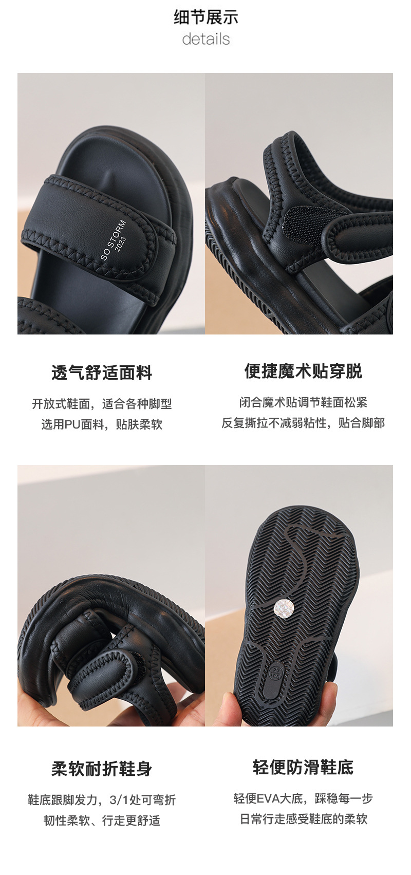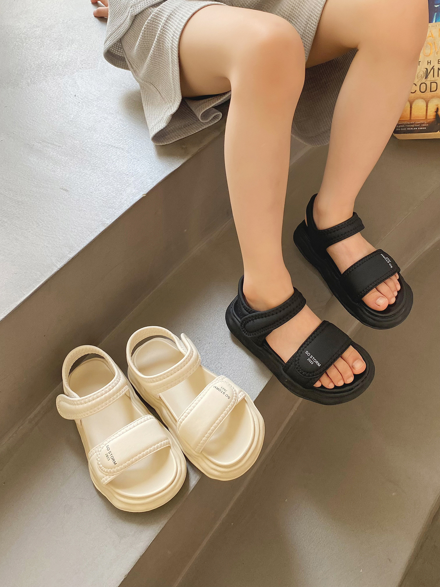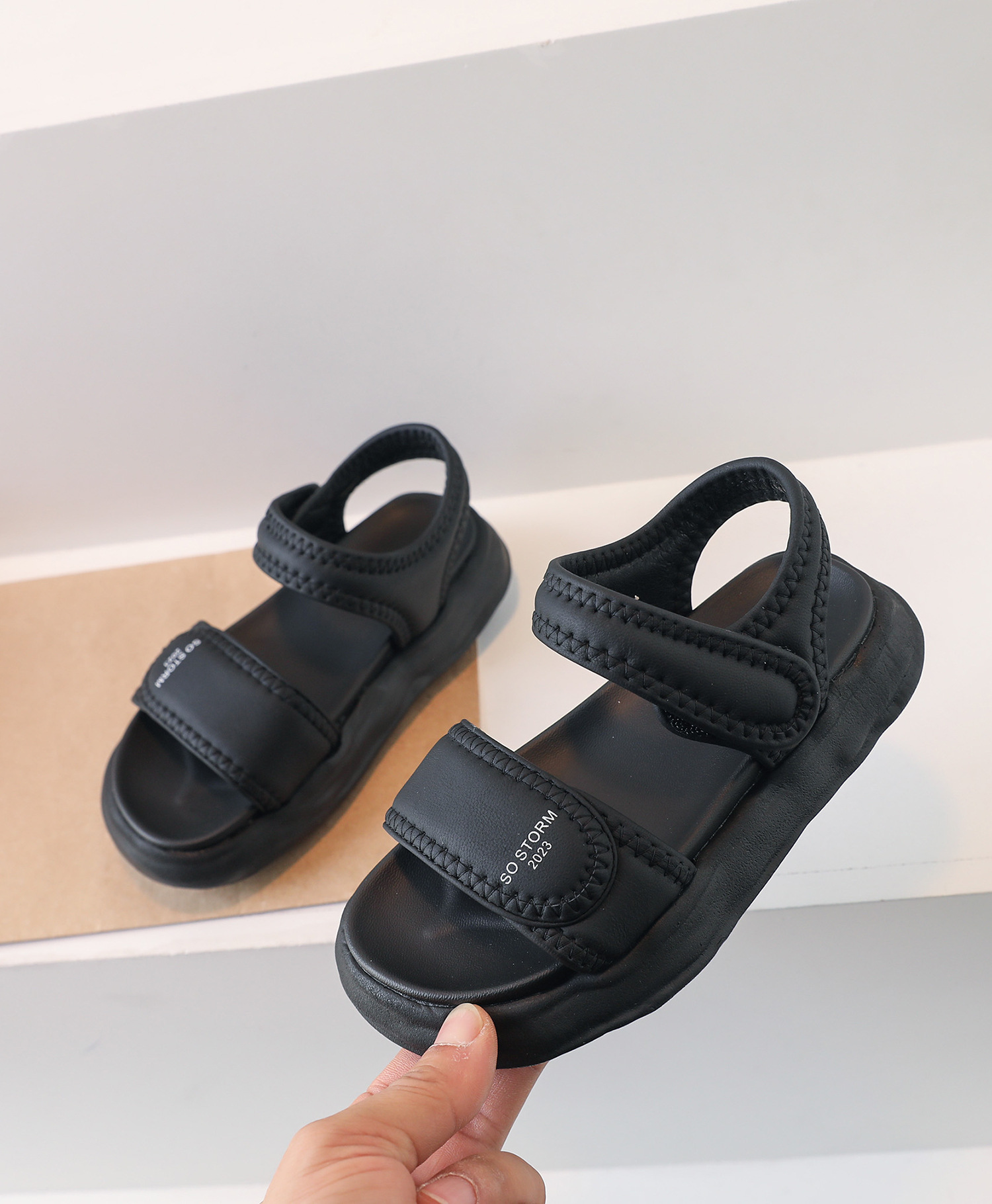 2023年夏季新款童鞋轻便透气儿童凉鞋韩版时尚厚底女童露趾沙滩鞋_HLY