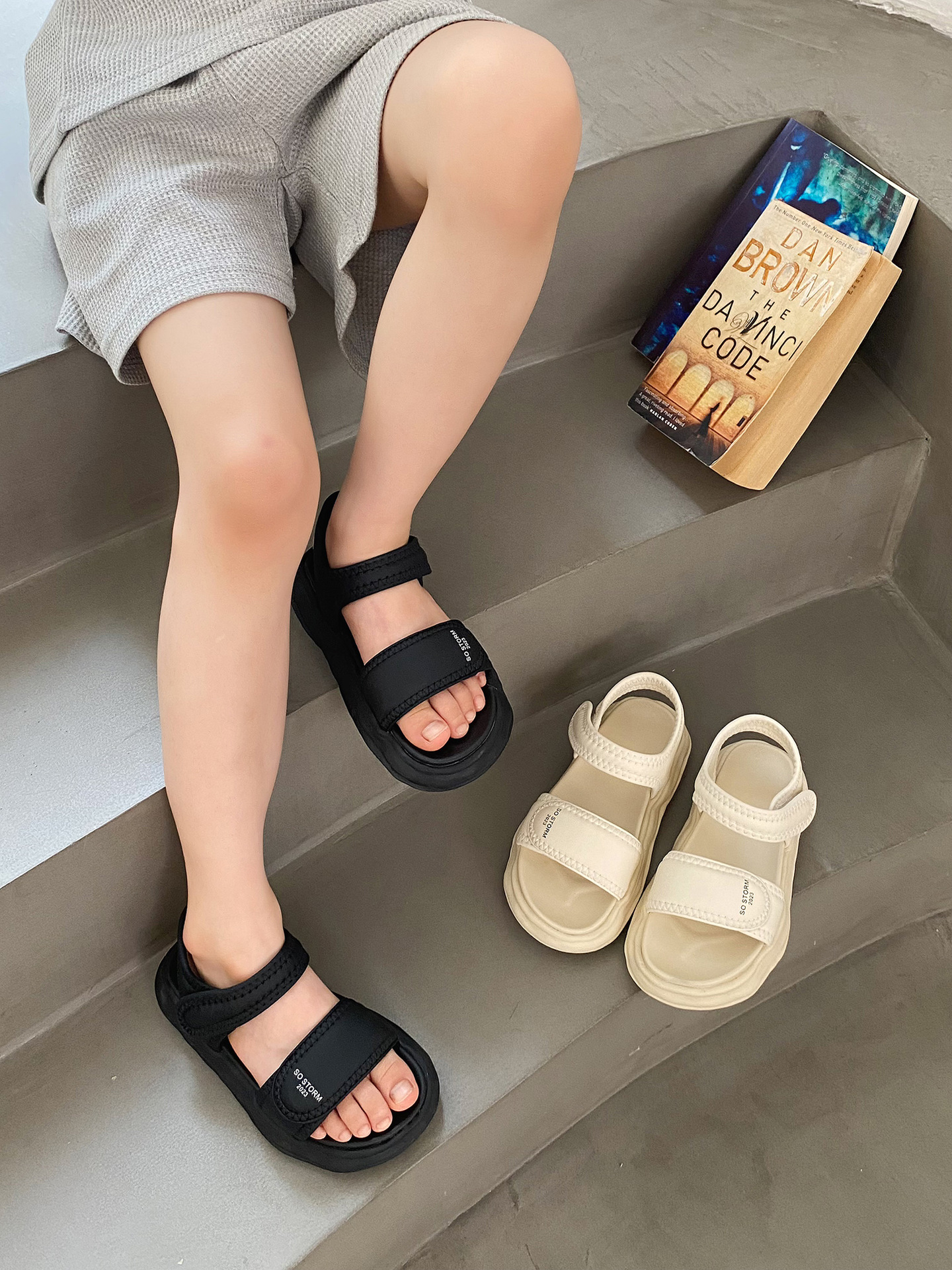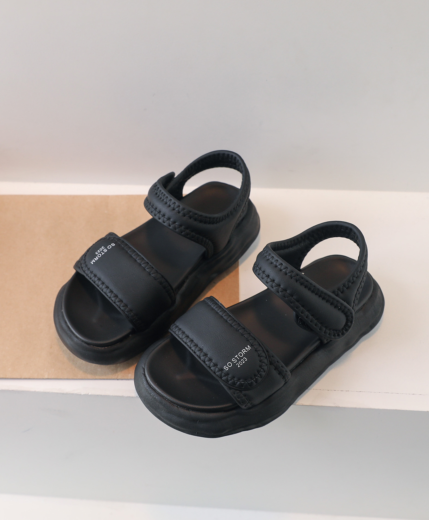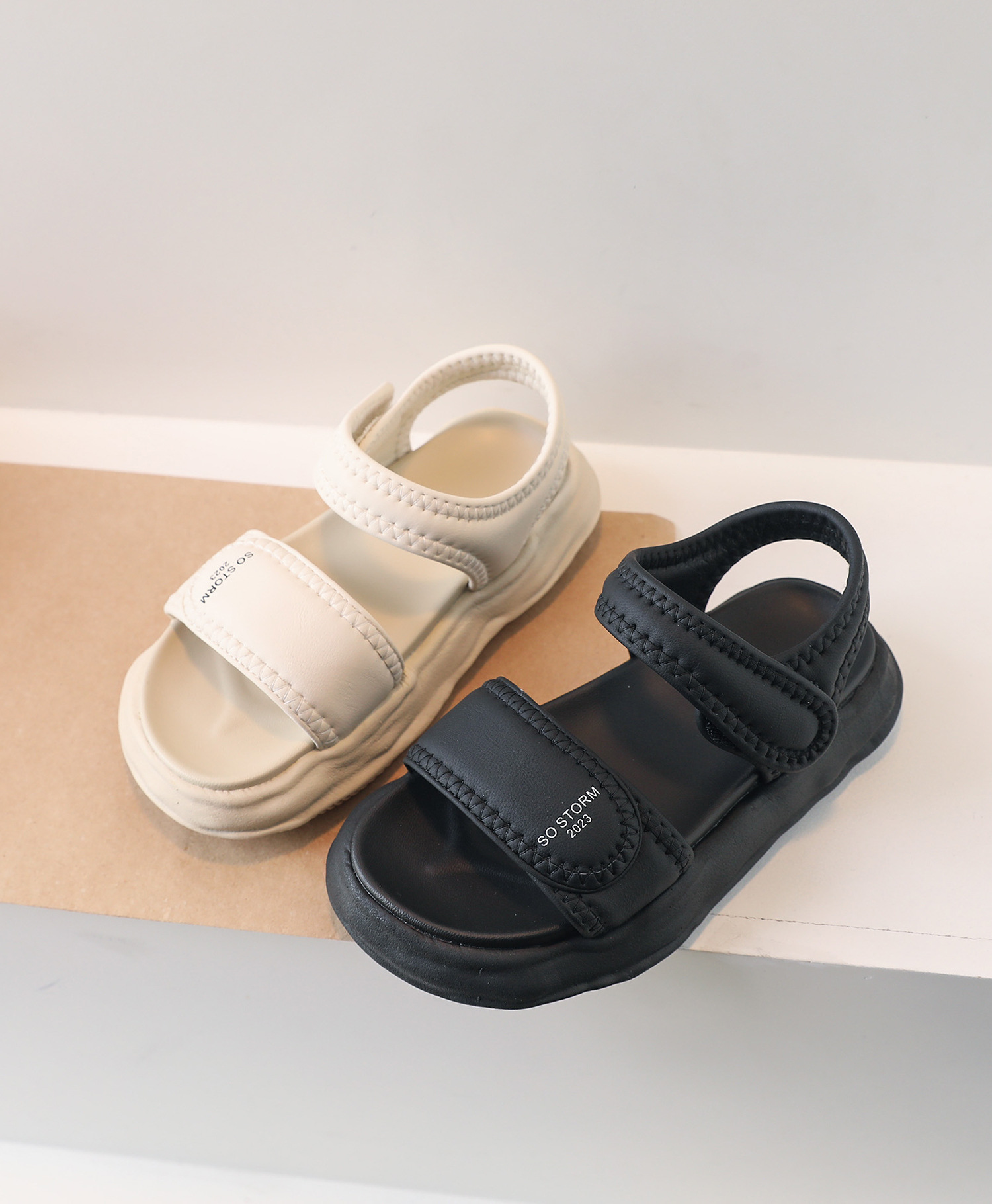 2023年夏季新款童鞋轻便透气儿童凉鞋韩版时尚厚底女童露趾沙滩鞋_HLY