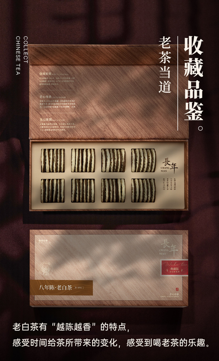 茶叶 8年老白茶 福鼎老白茶 长年 茶叶礼盒 典藏 茶饮 五虎 260g(同款买1送1共520g,配手提袋)