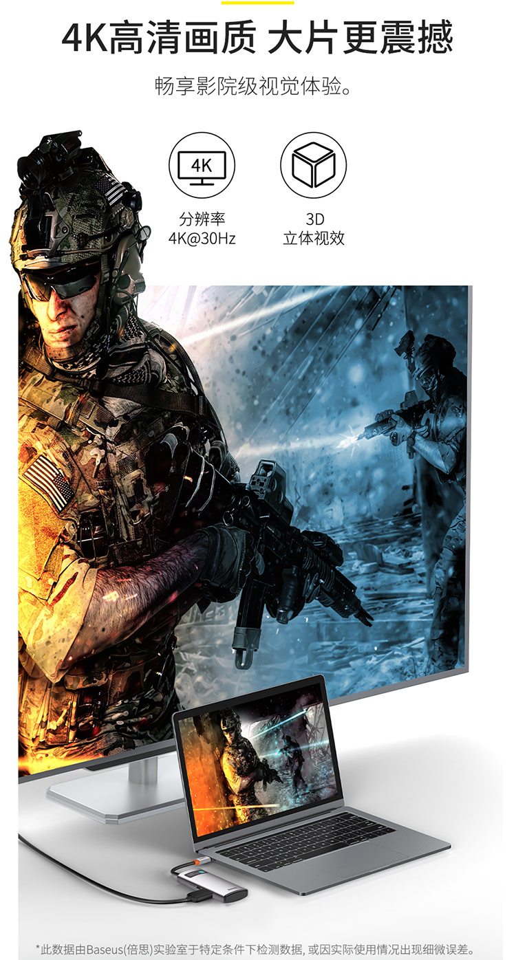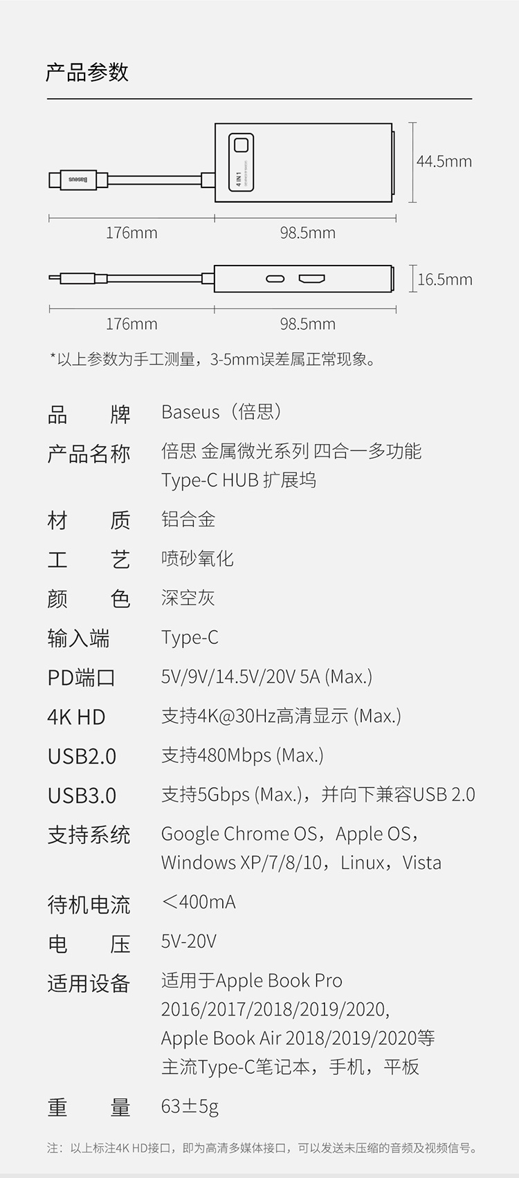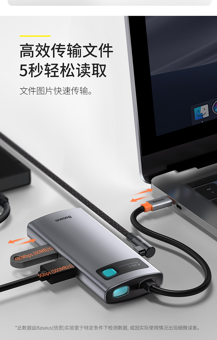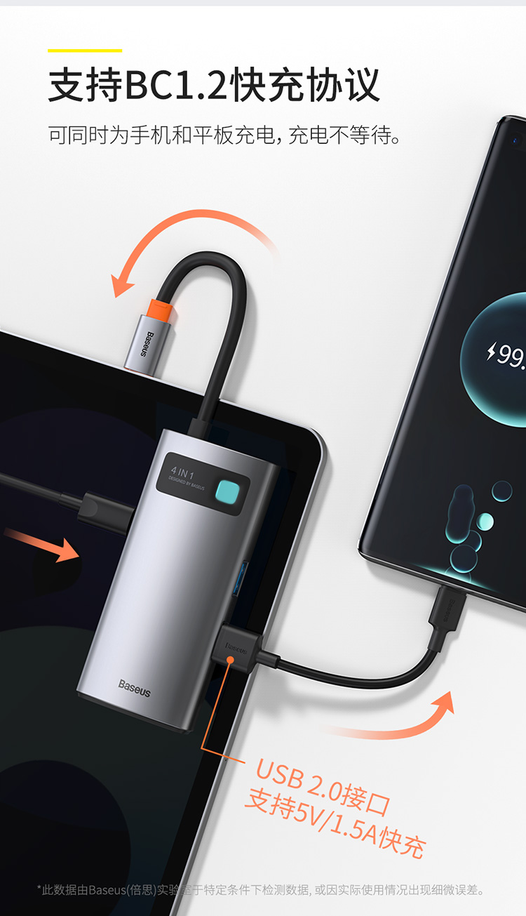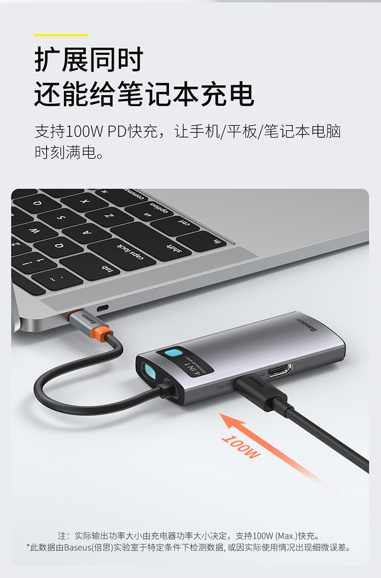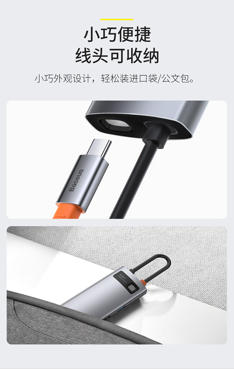 倍思 金属微光系列 四合一多功能Type-C HUB 扩展坞 (Type-C to HDMI*1+USB3.0*1+USB2.0*1+PD*1)