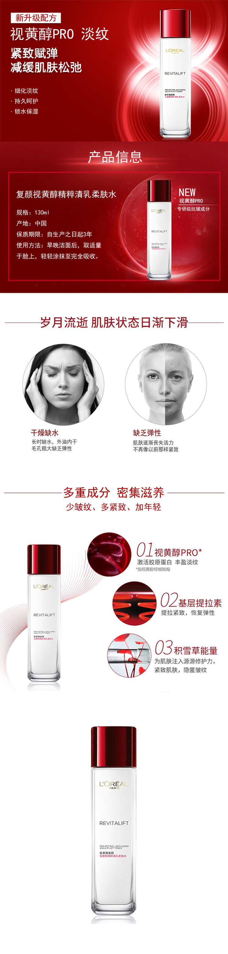 欧莱雅复颜视黄醇精粹清乳柔肤水(130ml)【30171382】