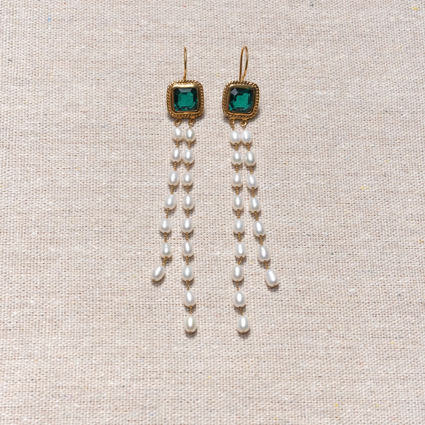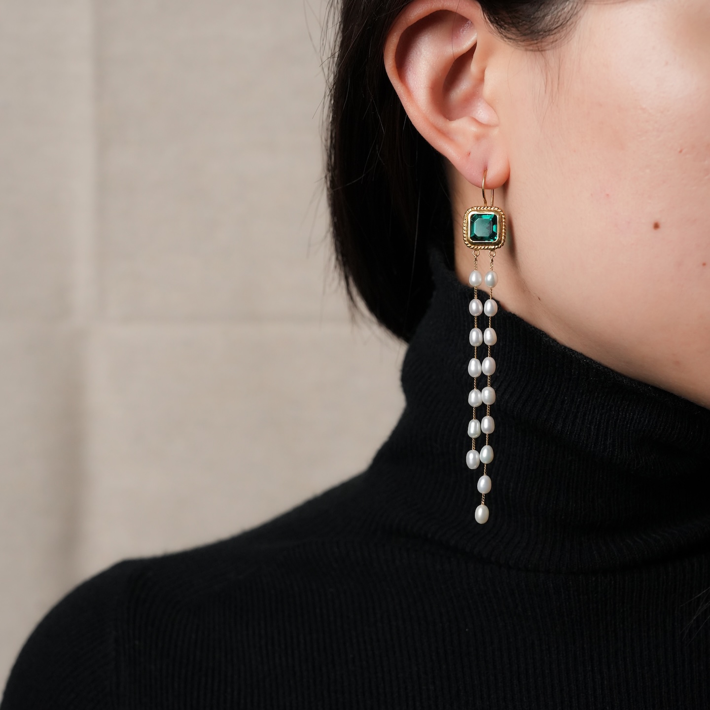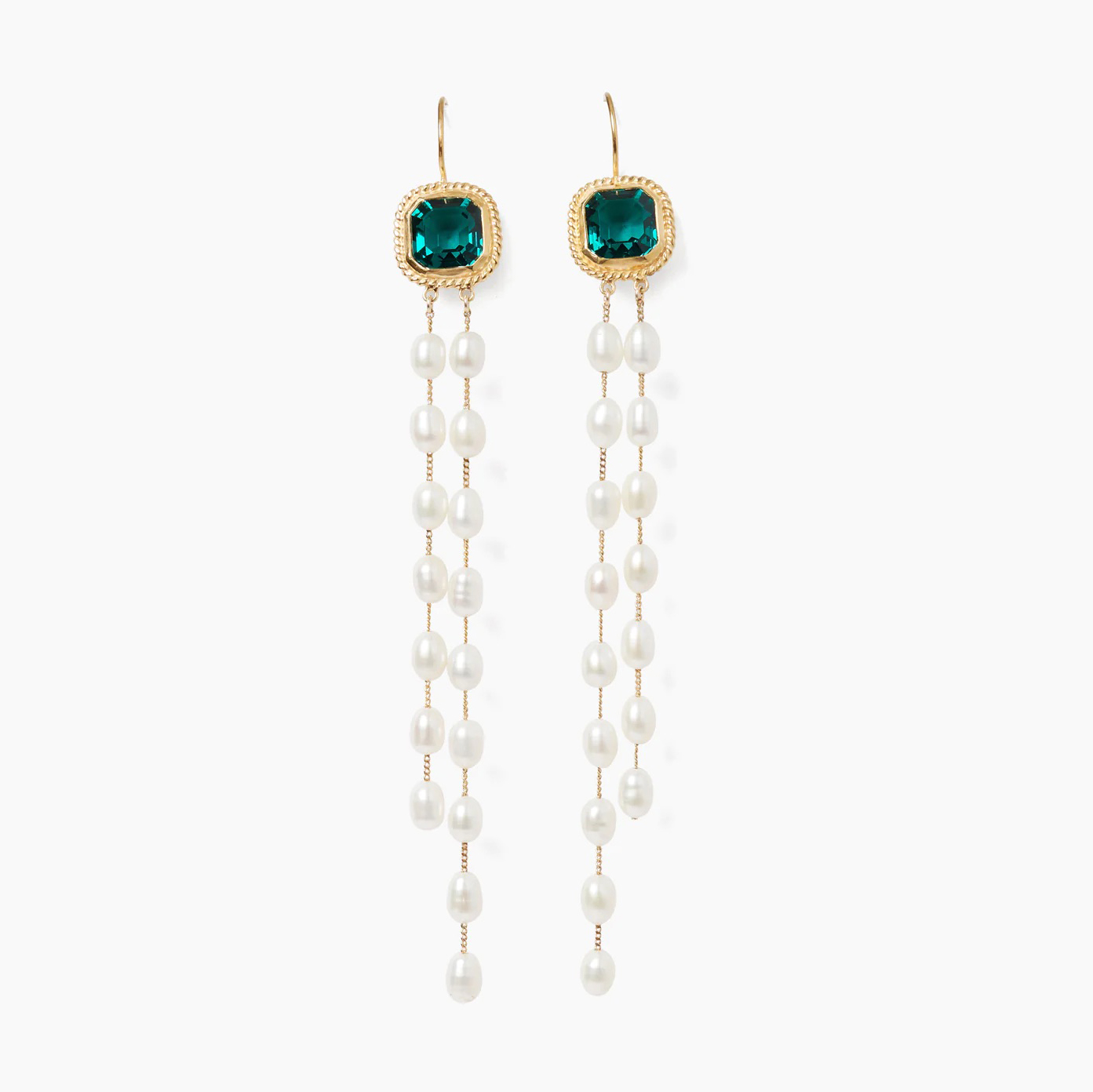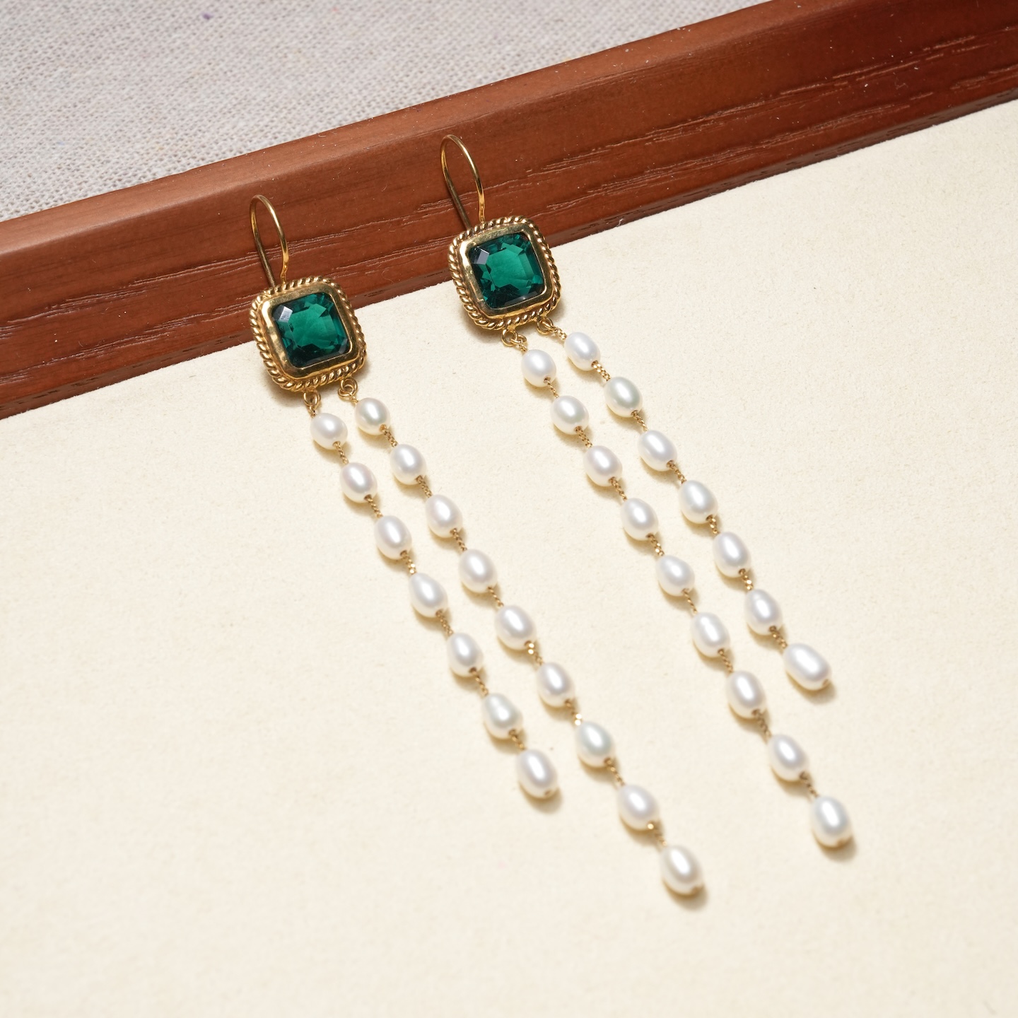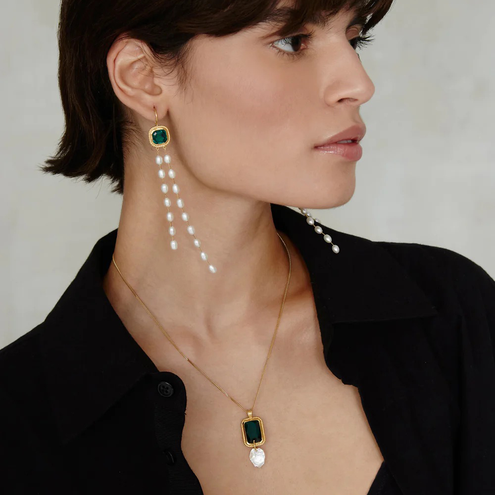北京仓|Chan Luu-GENEVA-淡水珍珠 祖母绿水晶 耳环[美国设计师]