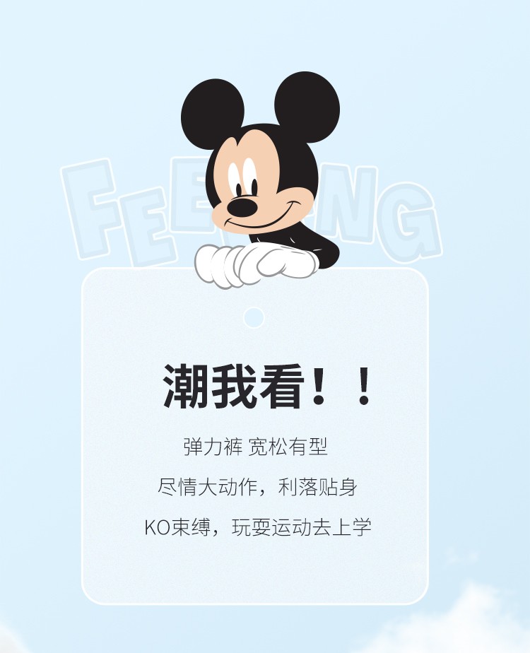 迪士尼童装男童休闲长裤秋季新品中大童米奇运动休闲束脚裤子