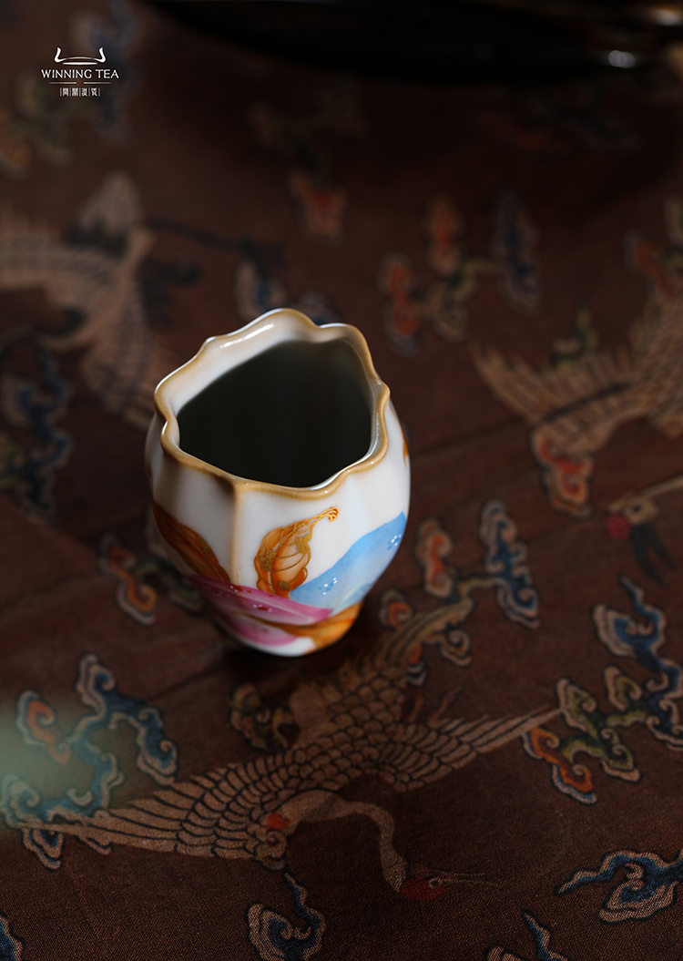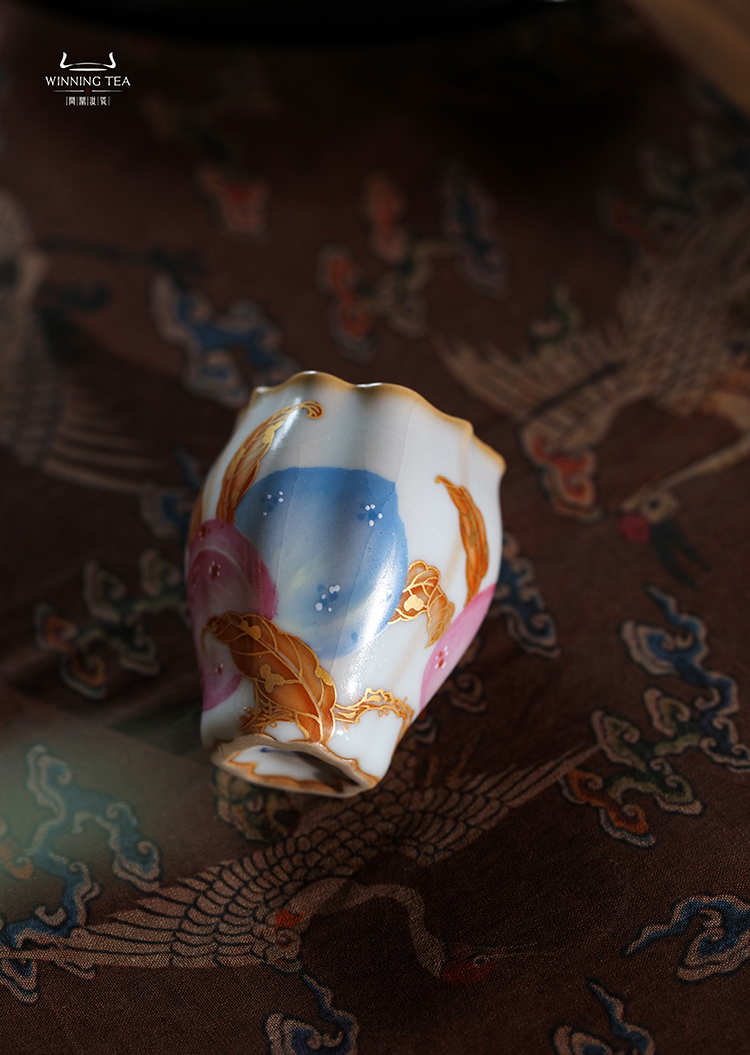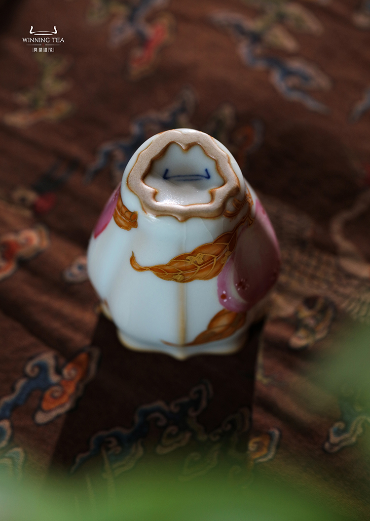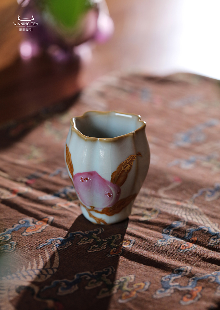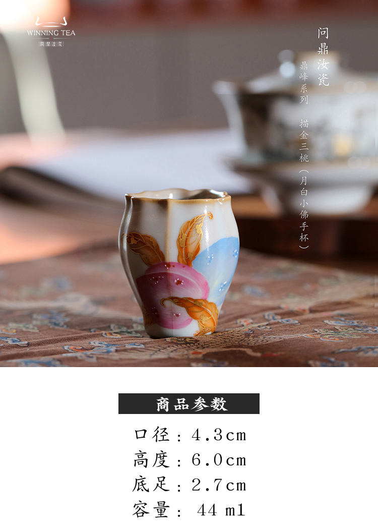 问鼎汝瓷鼎峰系列月白小佛手杯(描金三桃)