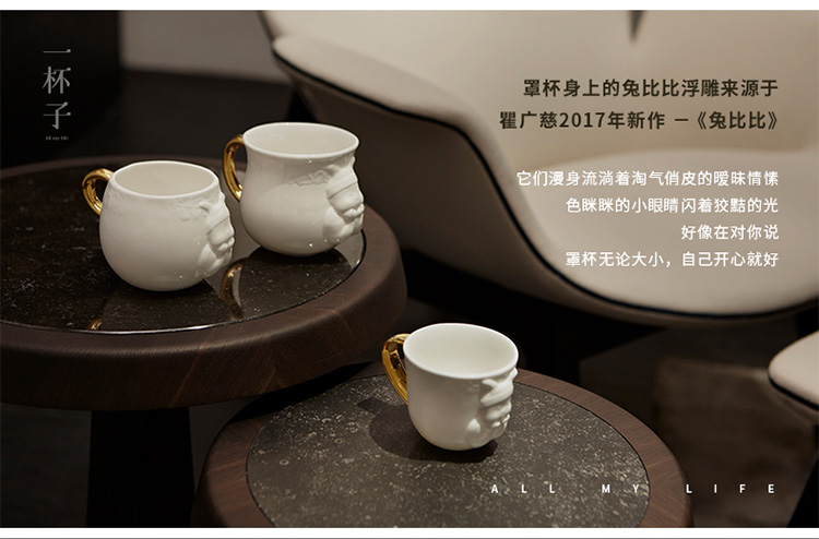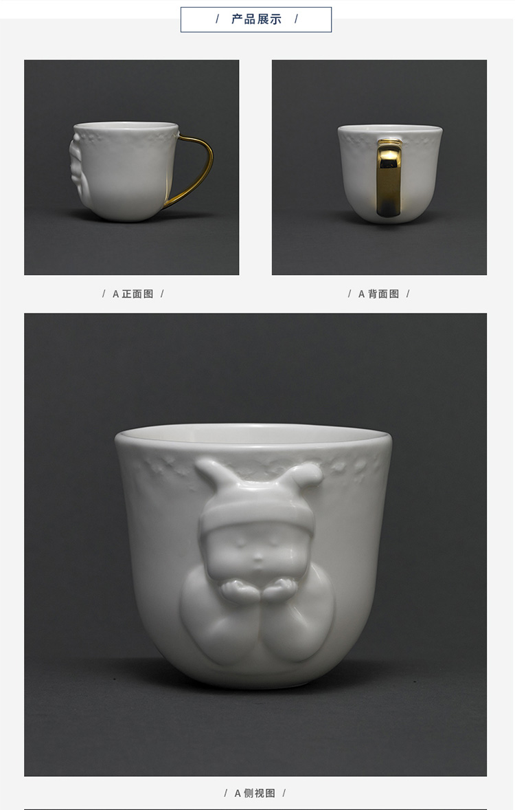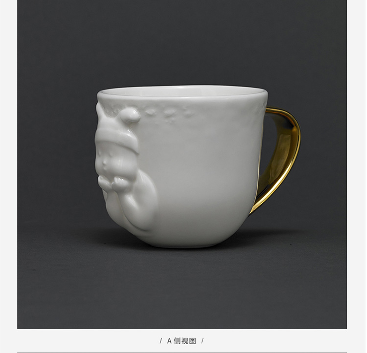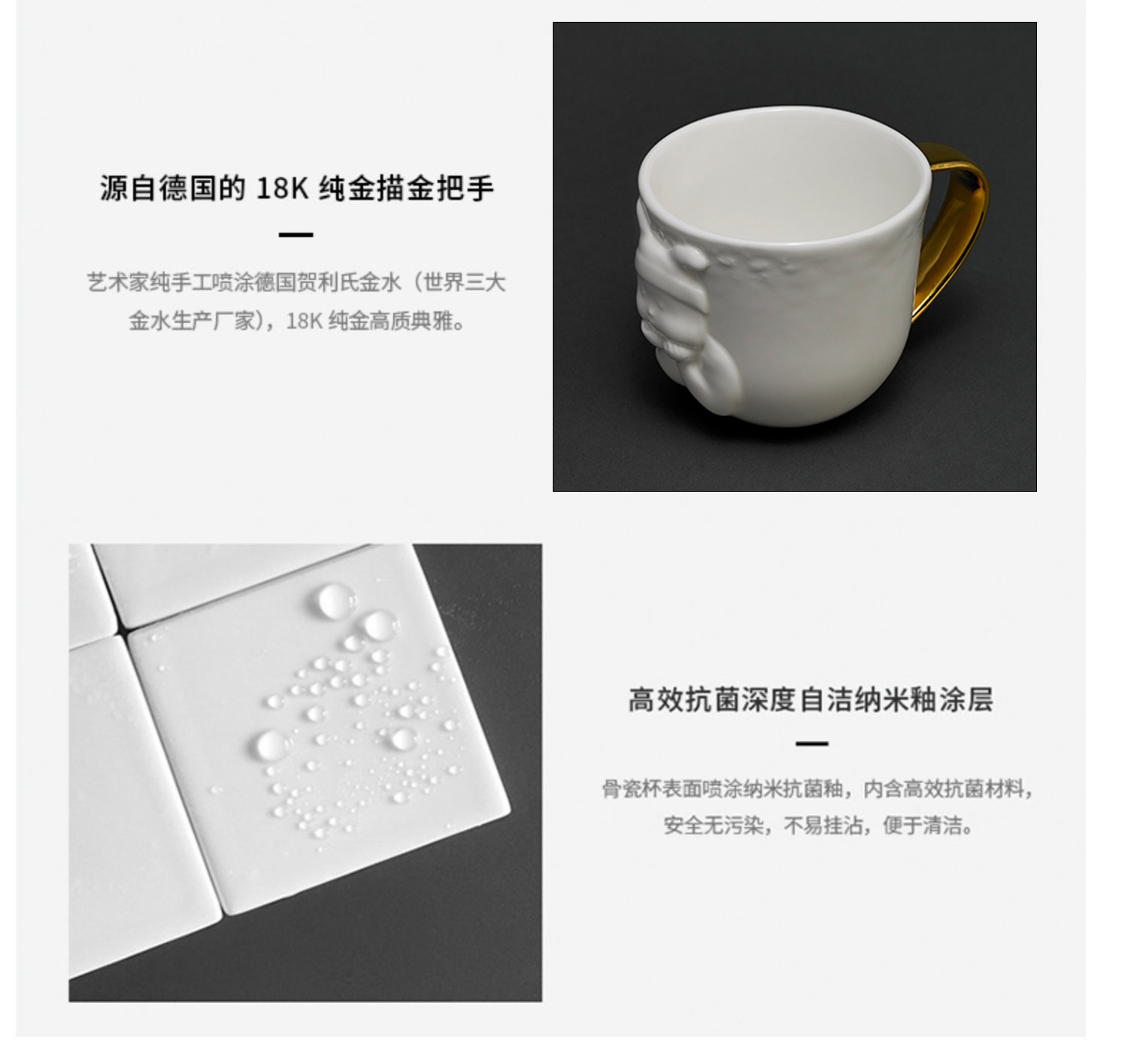稀奇艺术新品罩杯骨瓷杯金色把手浮雕水杯创意礼物送男友礼品