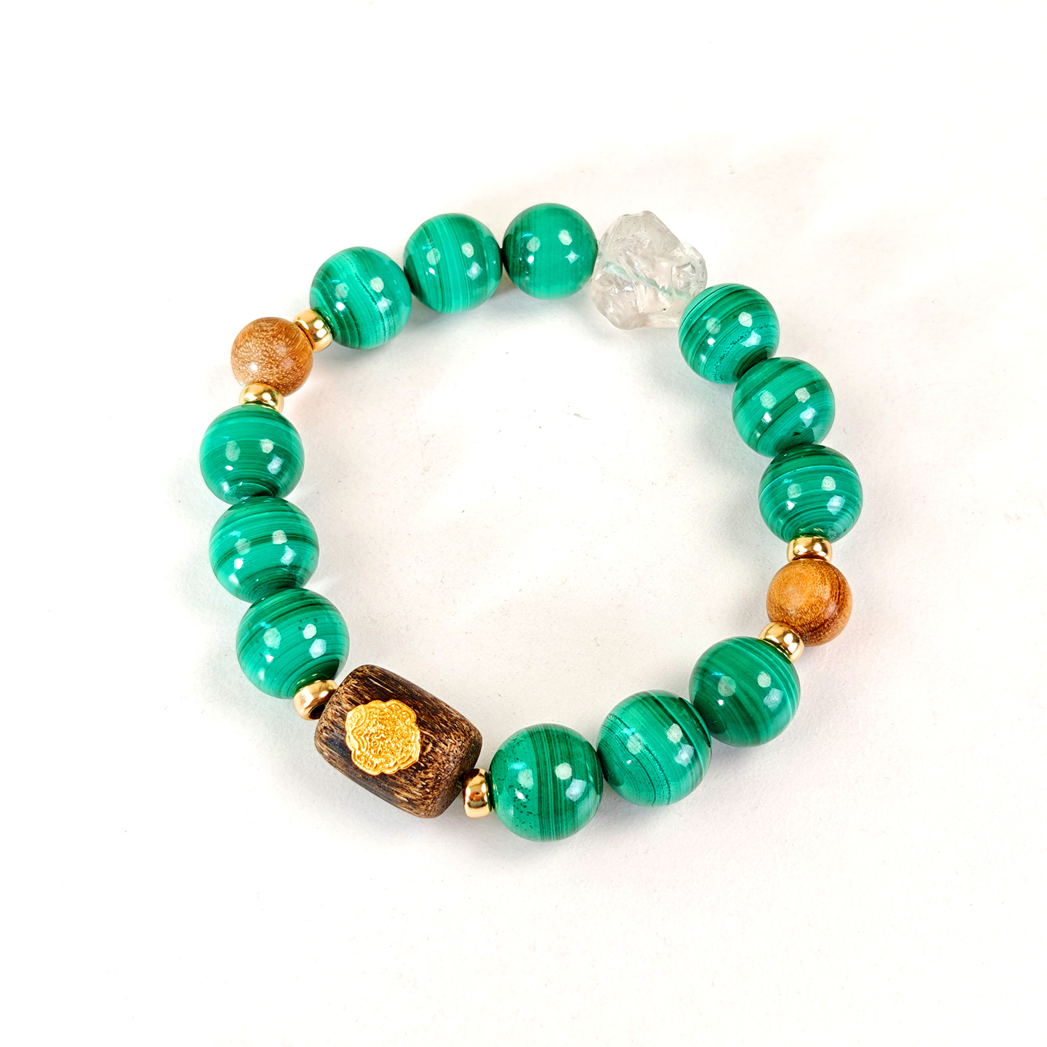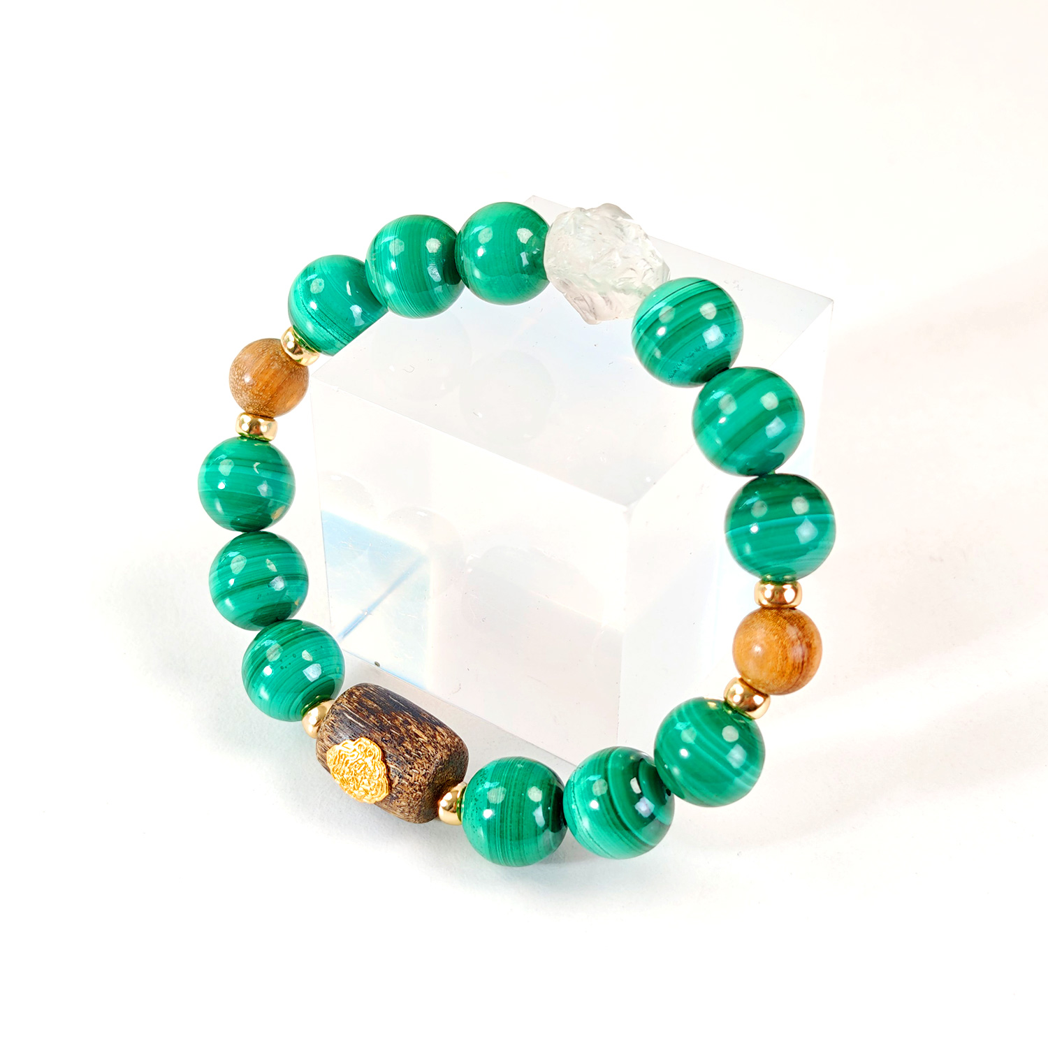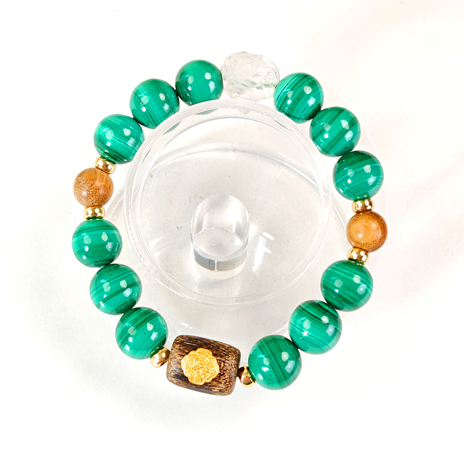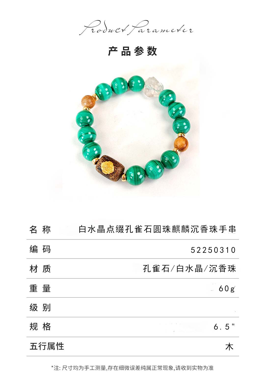 MELI&MOLI|白水晶点缀孔雀石圆珠麒麟沉香珠手串-五行之木