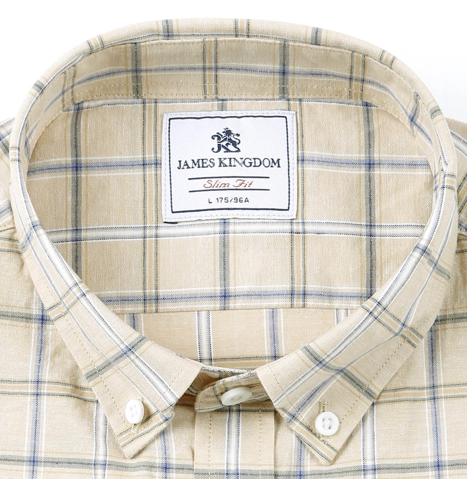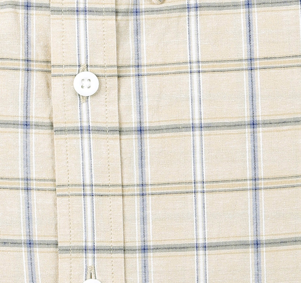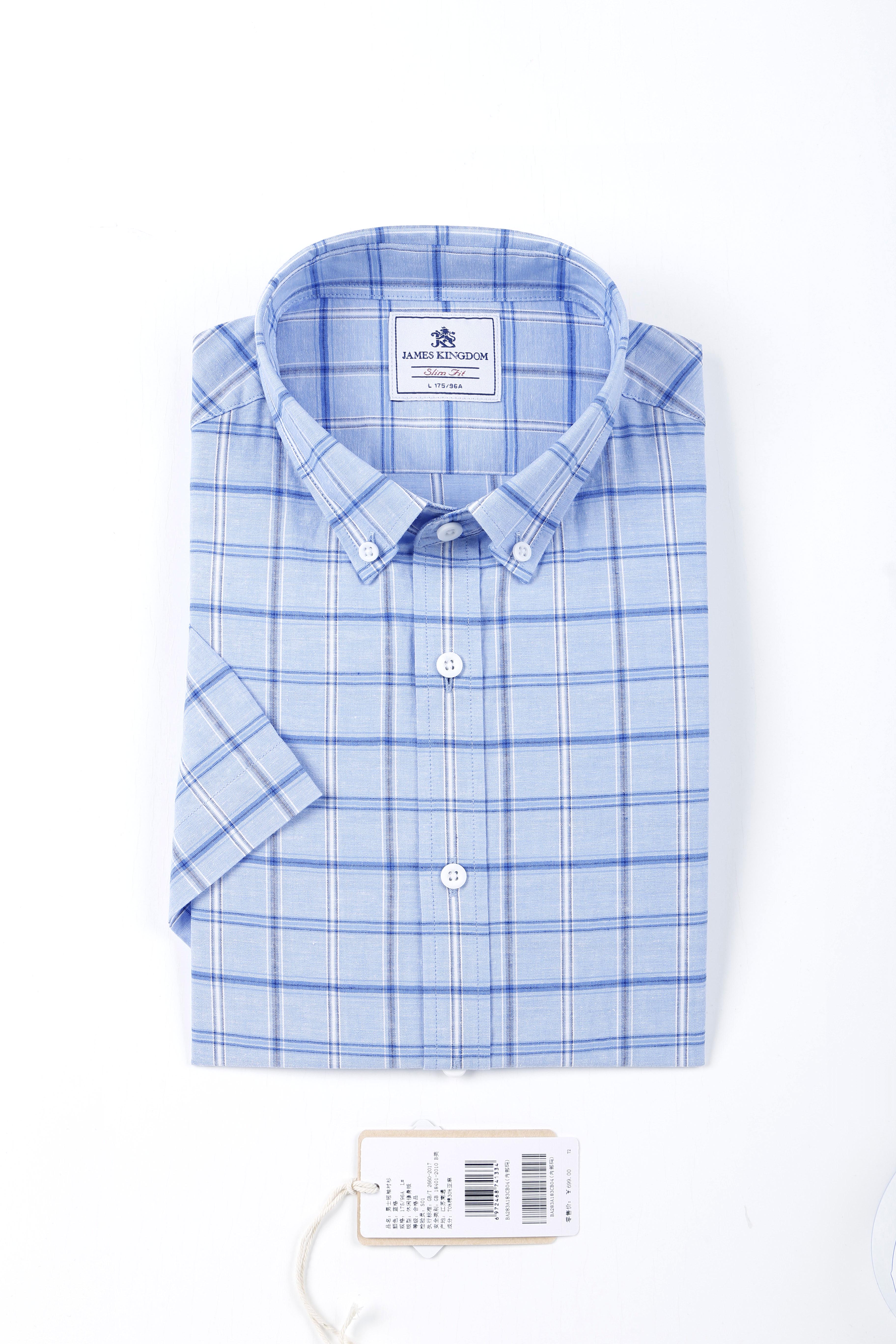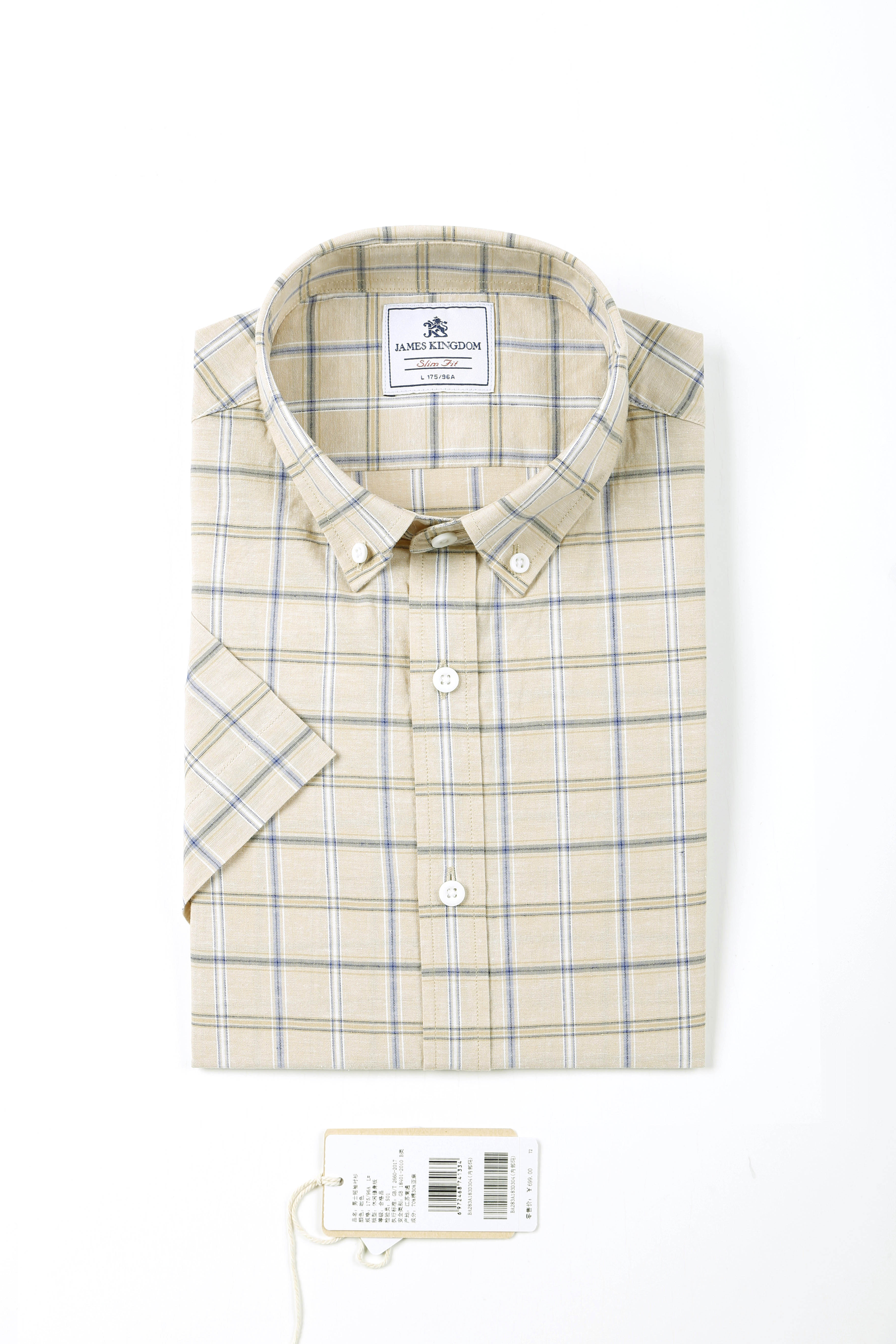 【棉麻混纺】占姆士男士棉麻混纺男士格纹短袖