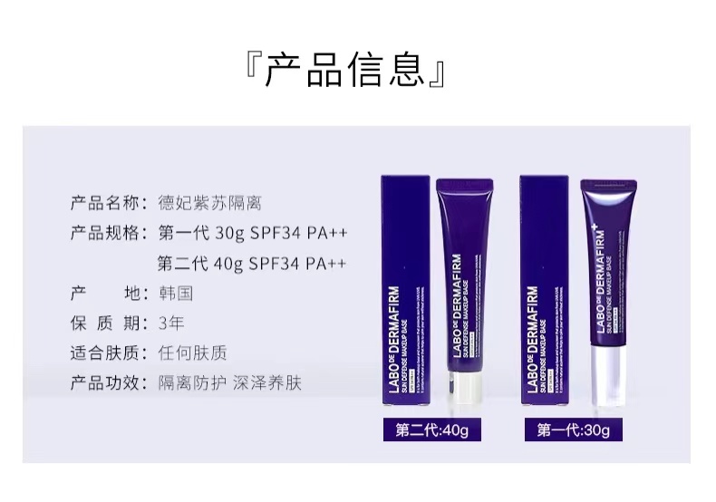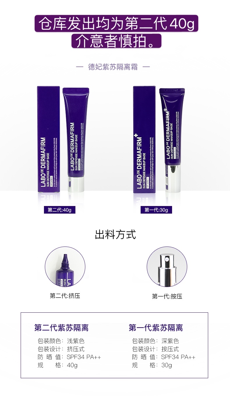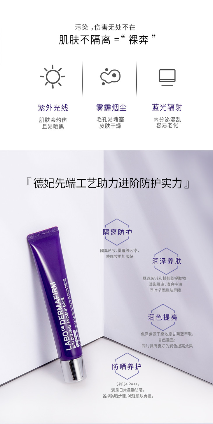 现货 ▲德妃紫苏隔离霜妆前乳 修饰肤色妆前打底防晒 40g