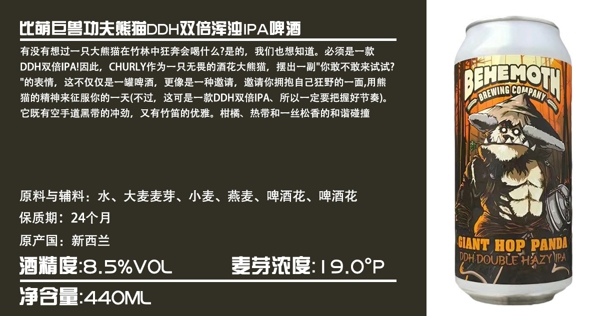 【冷库储存】新西兰比萌巨兽功夫熊猫DDH双倍浑浊IPA 8.5%vol