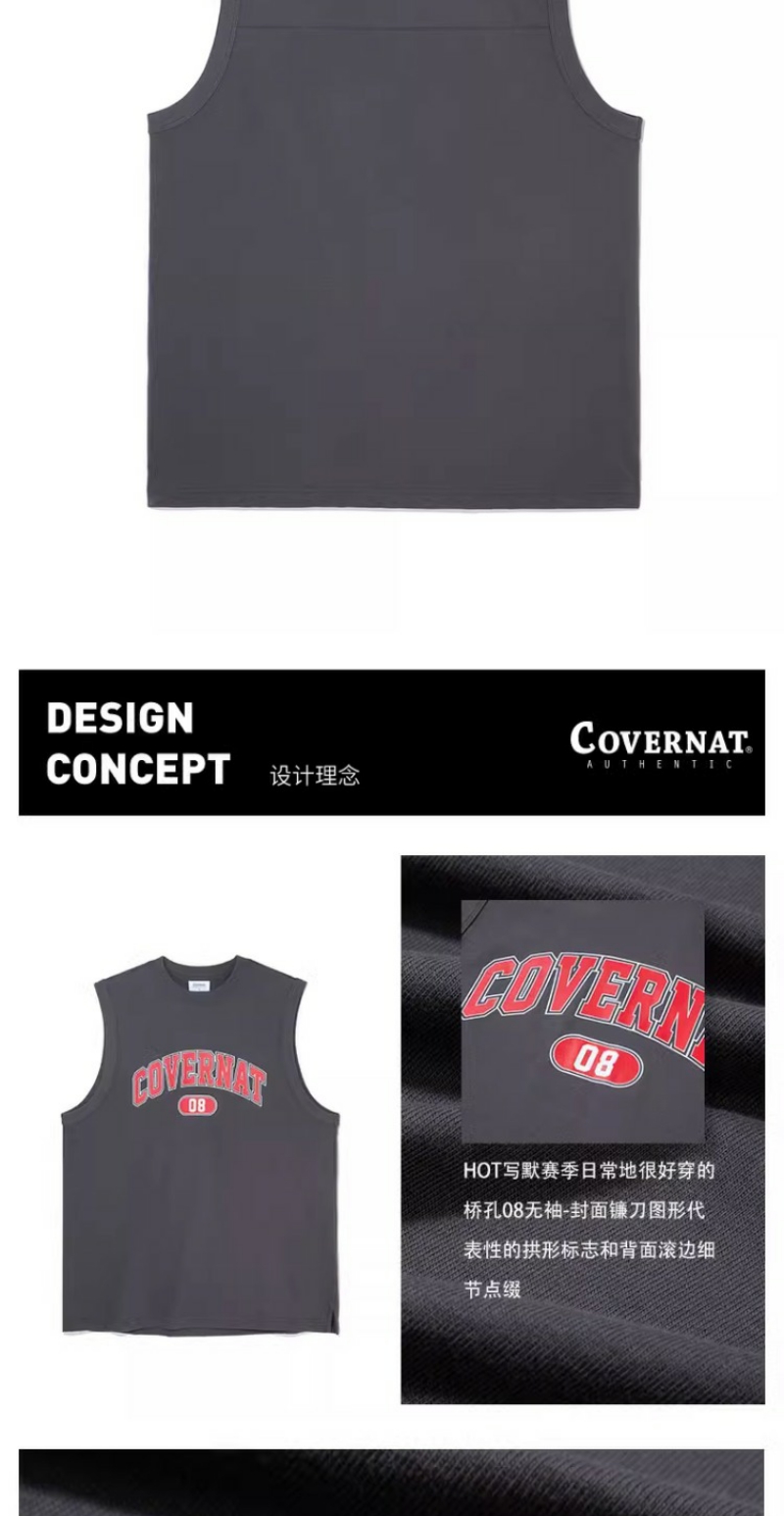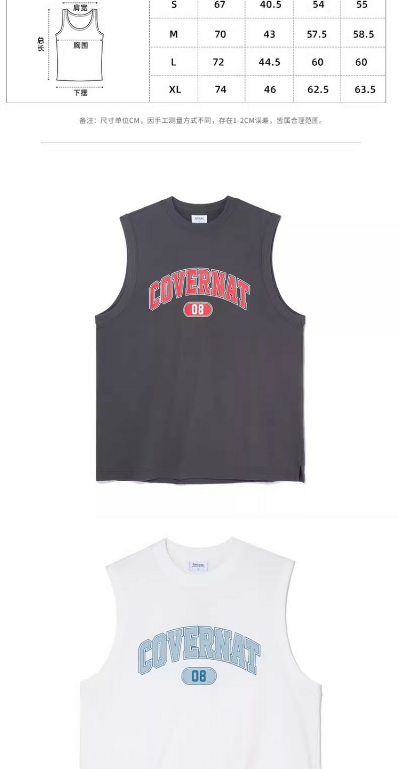 covernat韩国潮牌时尚休闲拱形LOGO无袖宽松背心2024春夏新品CO2402ST26