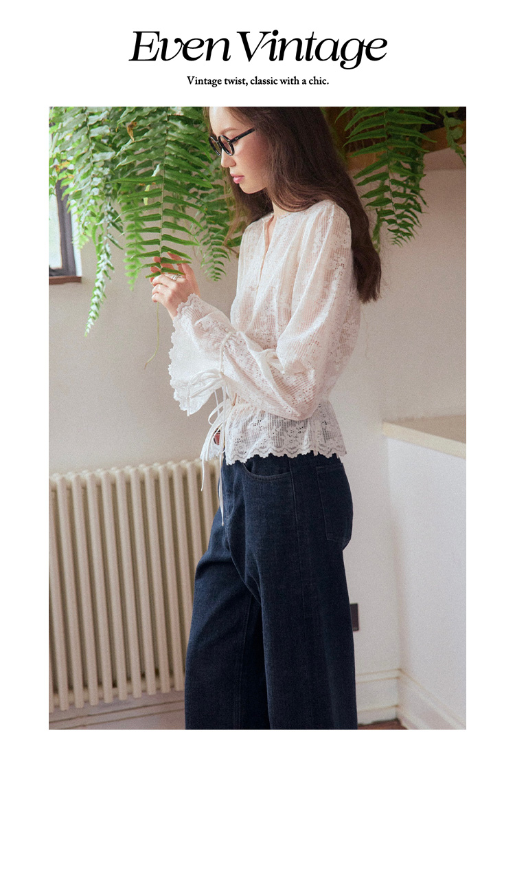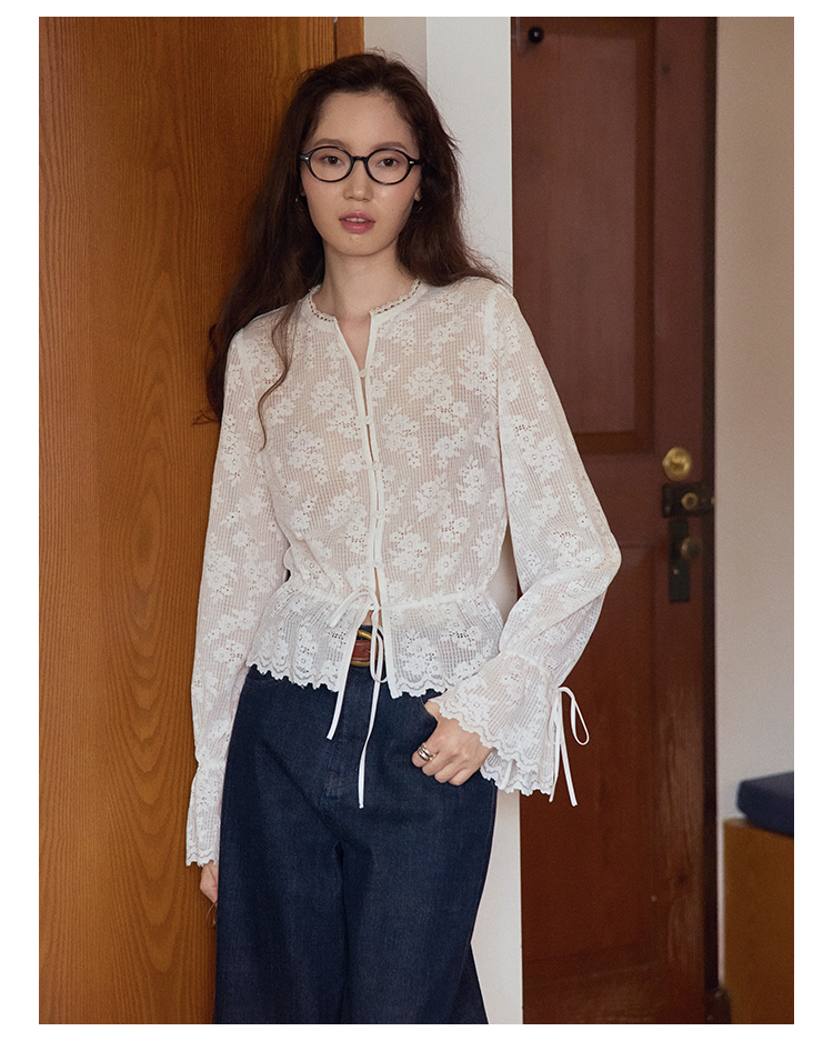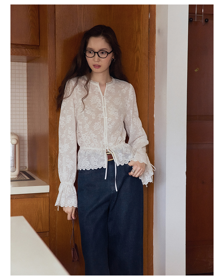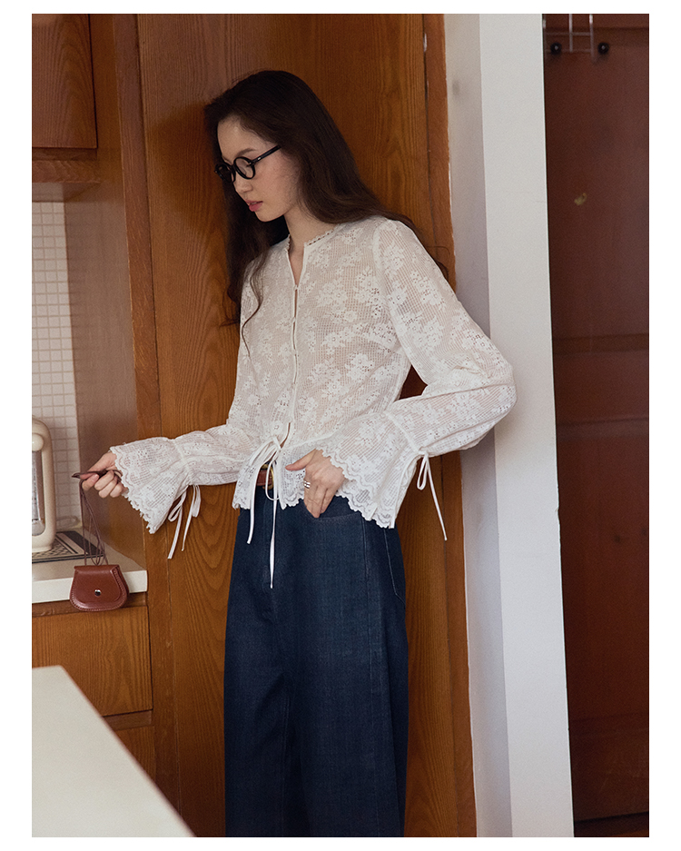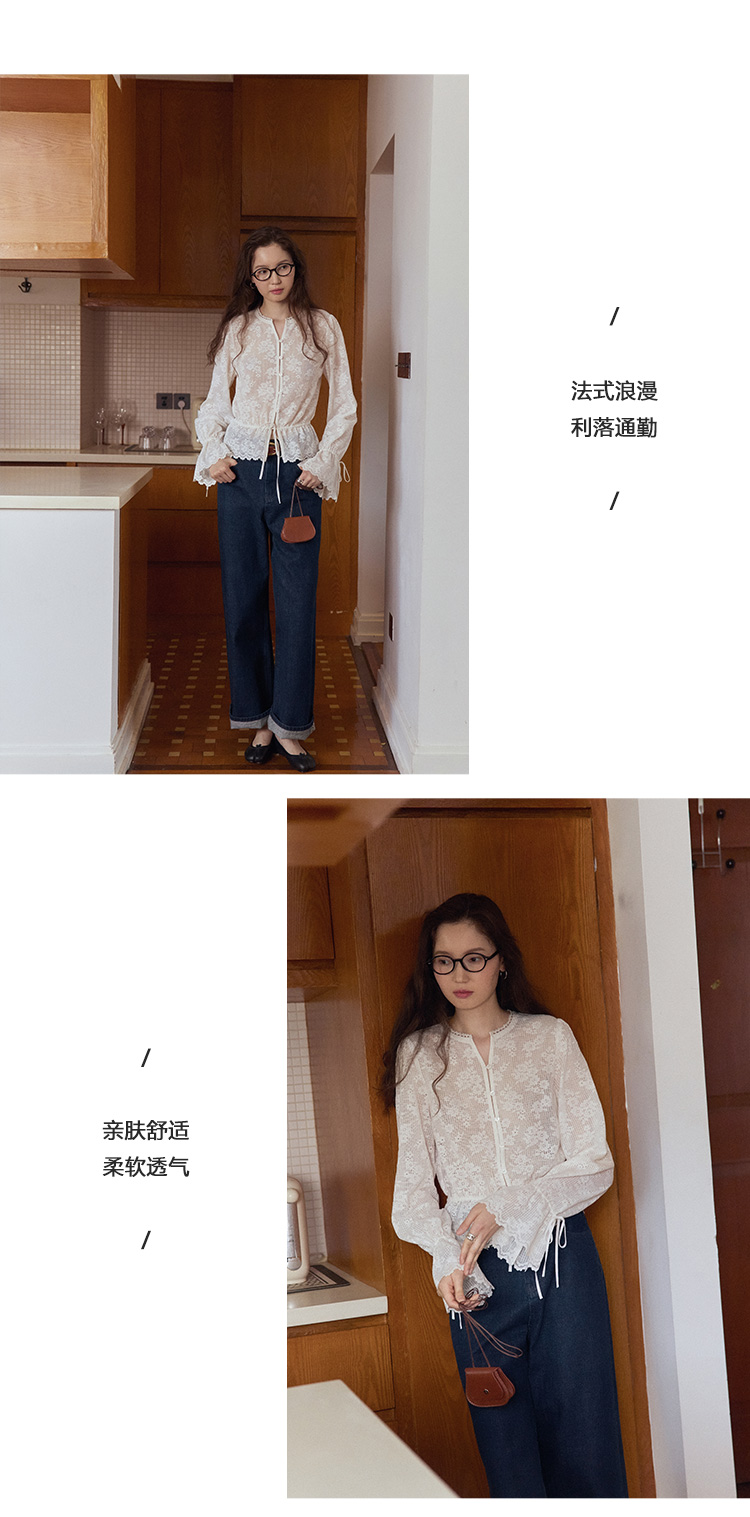 Even Vintage | 浪漫氛围 精致感蕾丝花边短款收腰长袖小衫衬衫