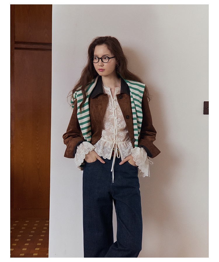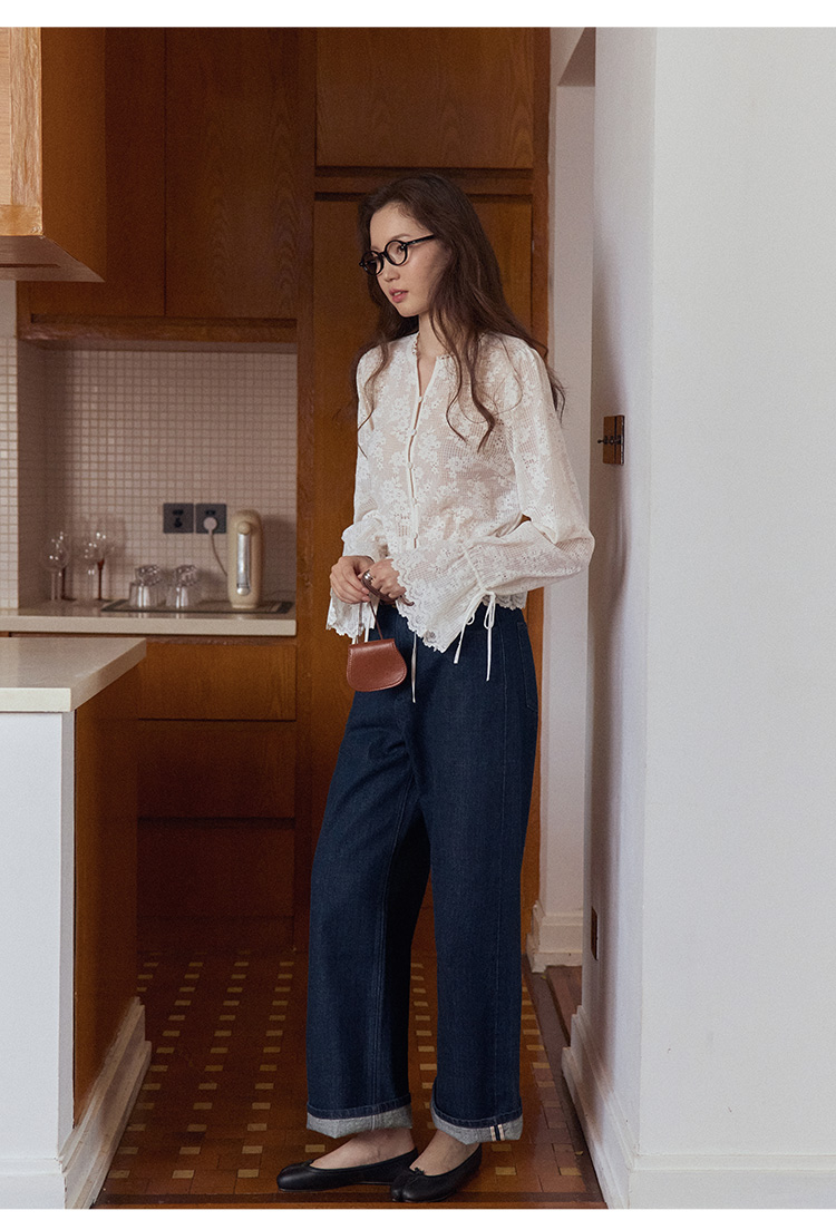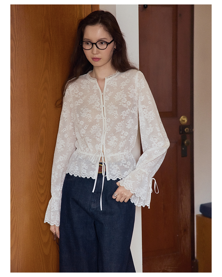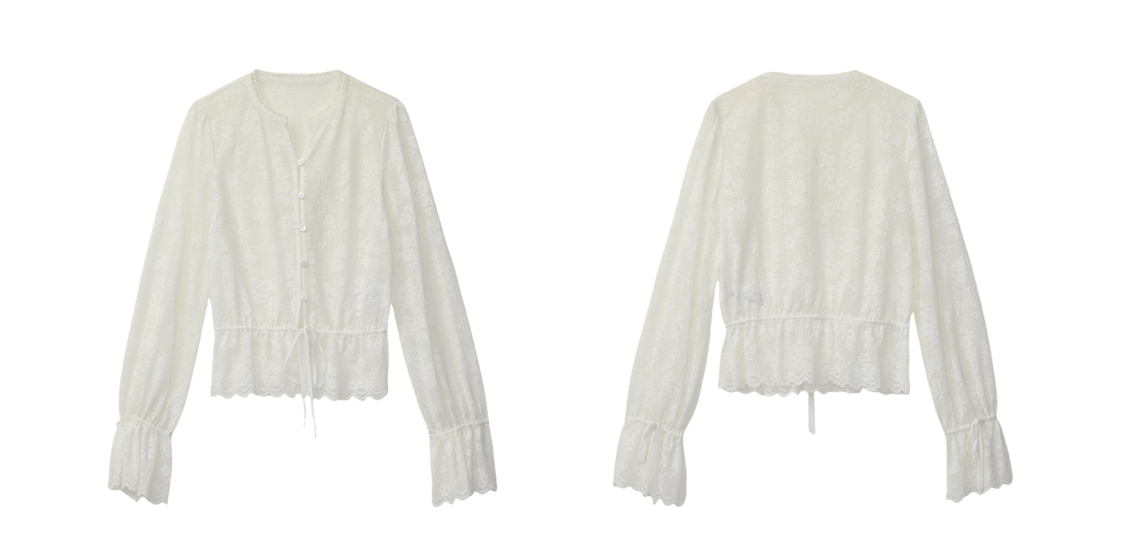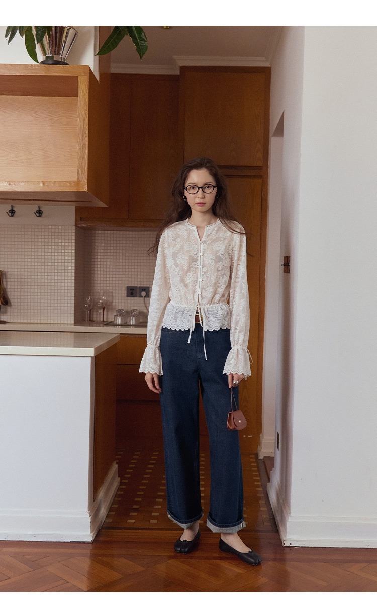 Even Vintage | 浪漫氛围 精致感蕾丝花边短款收腰长袖小衫衬衫