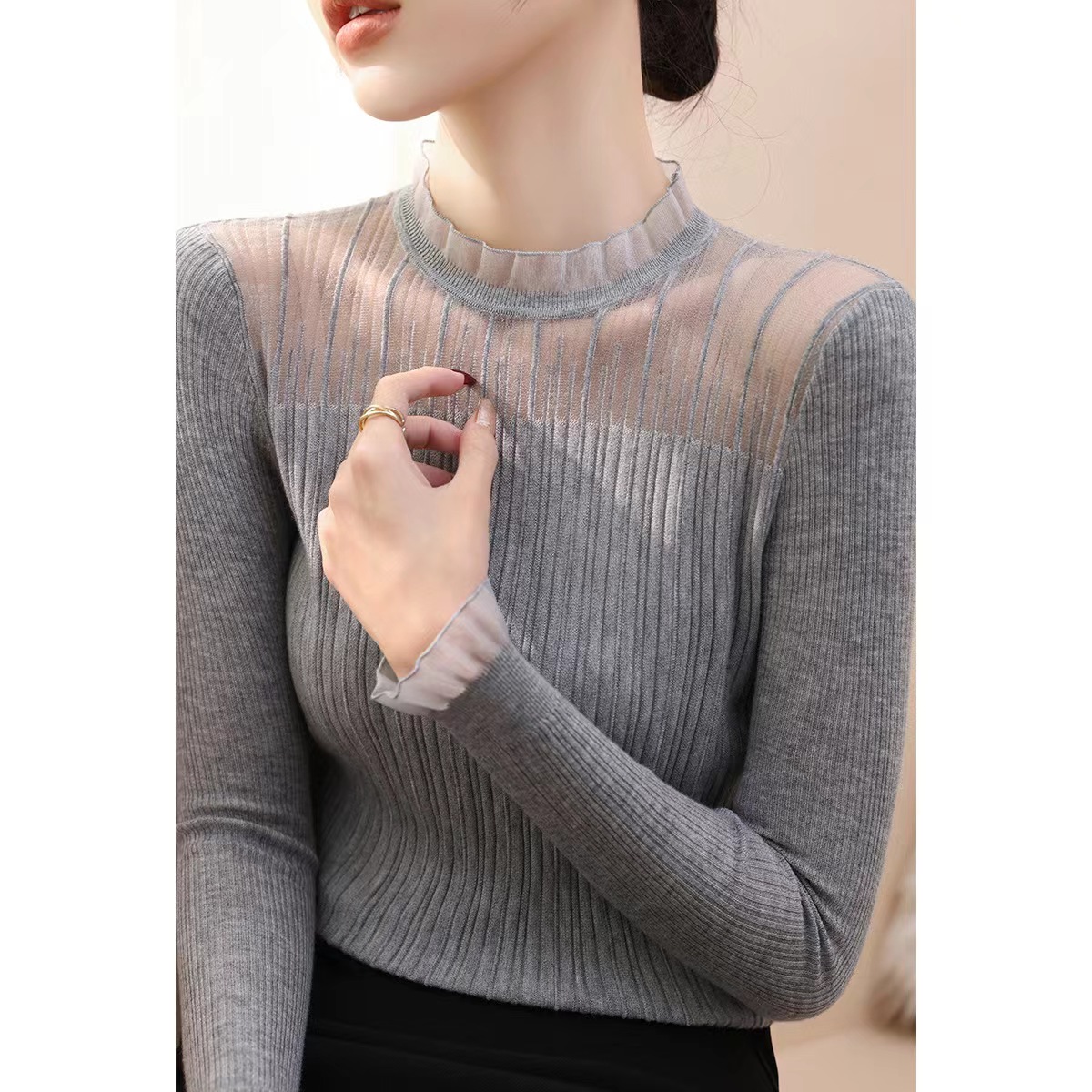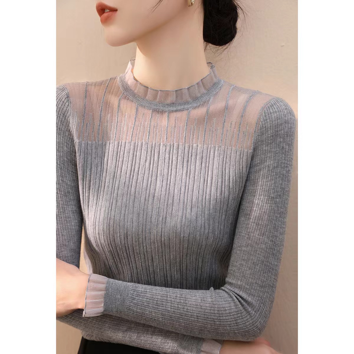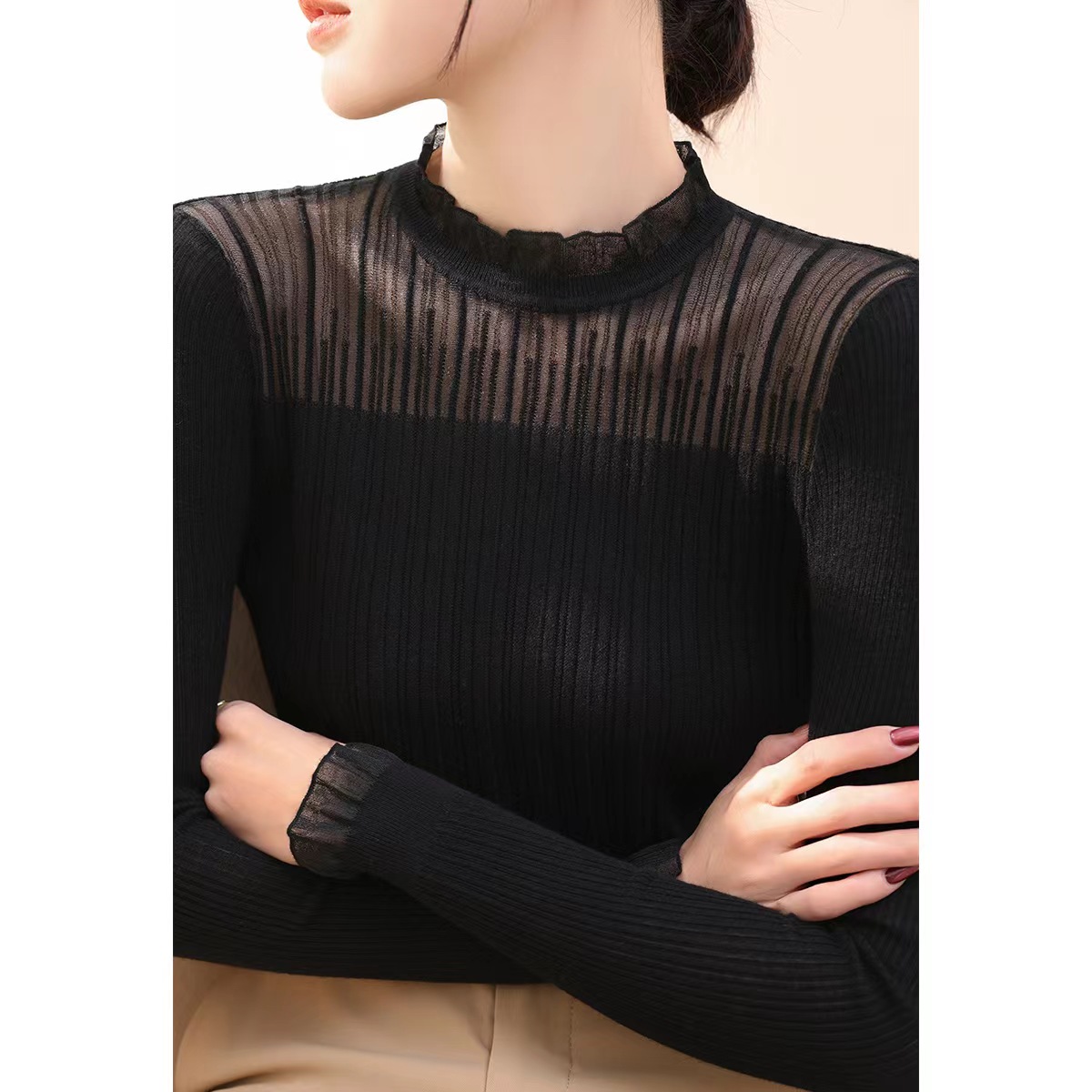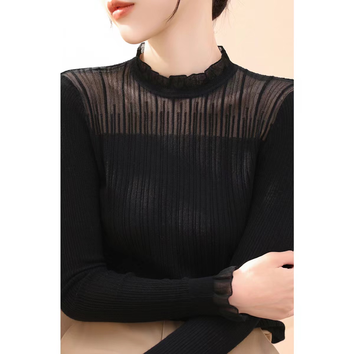 【顺心衫】莱赛尔25春秋法式花边领蕾丝长袖打底衫【81.6%莱赛尔18.4%锦纶】 H253090258
