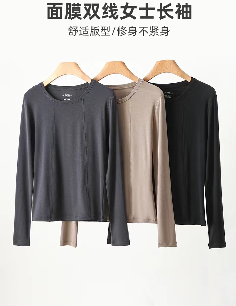 【品名】YZ竹纤维女士时尚面膜双线长袖打底衫09011