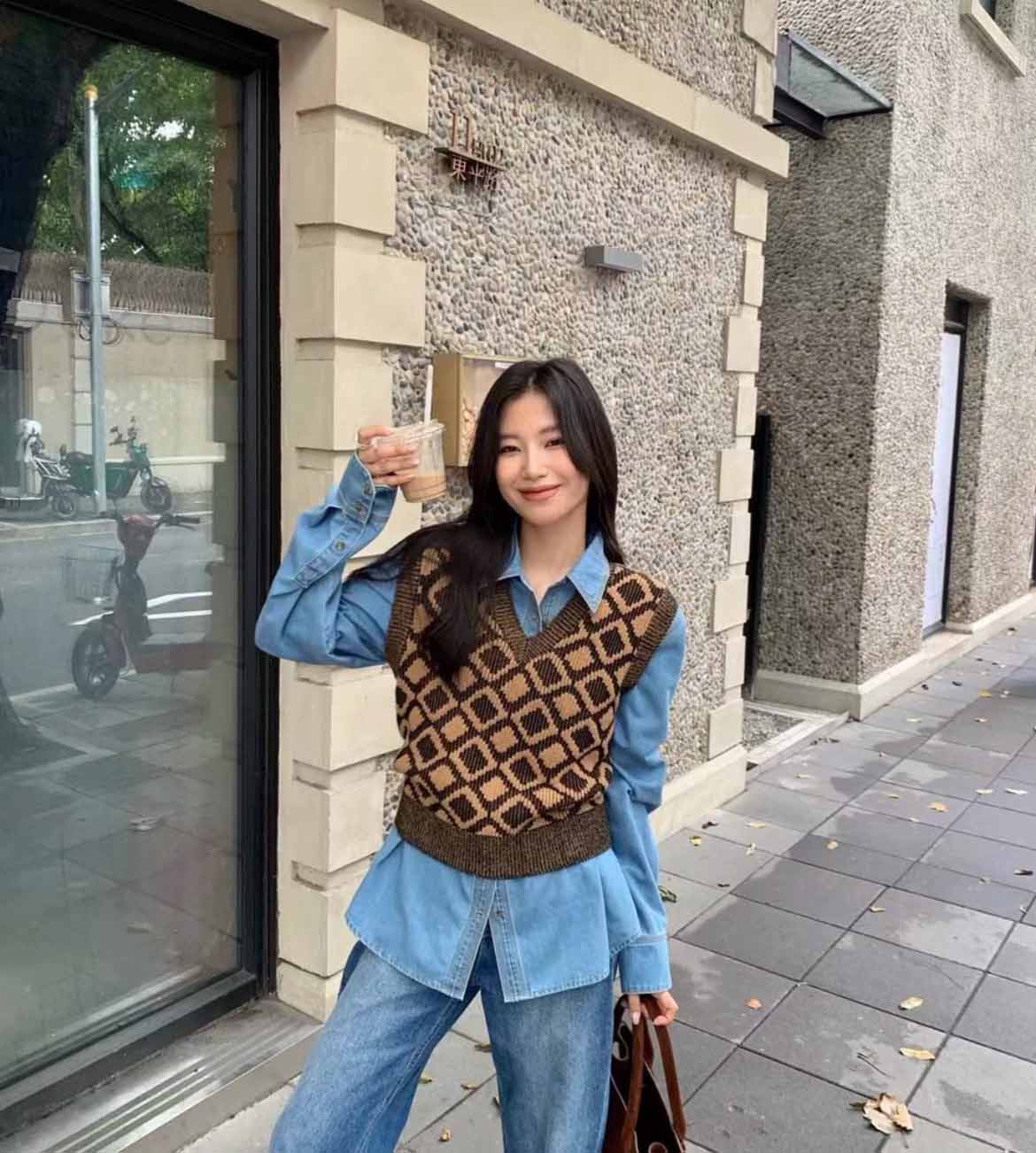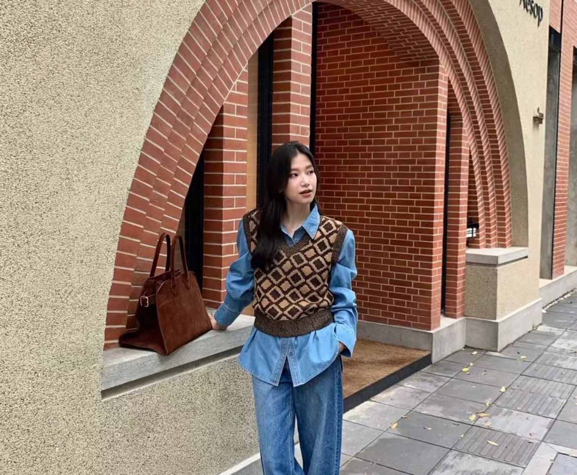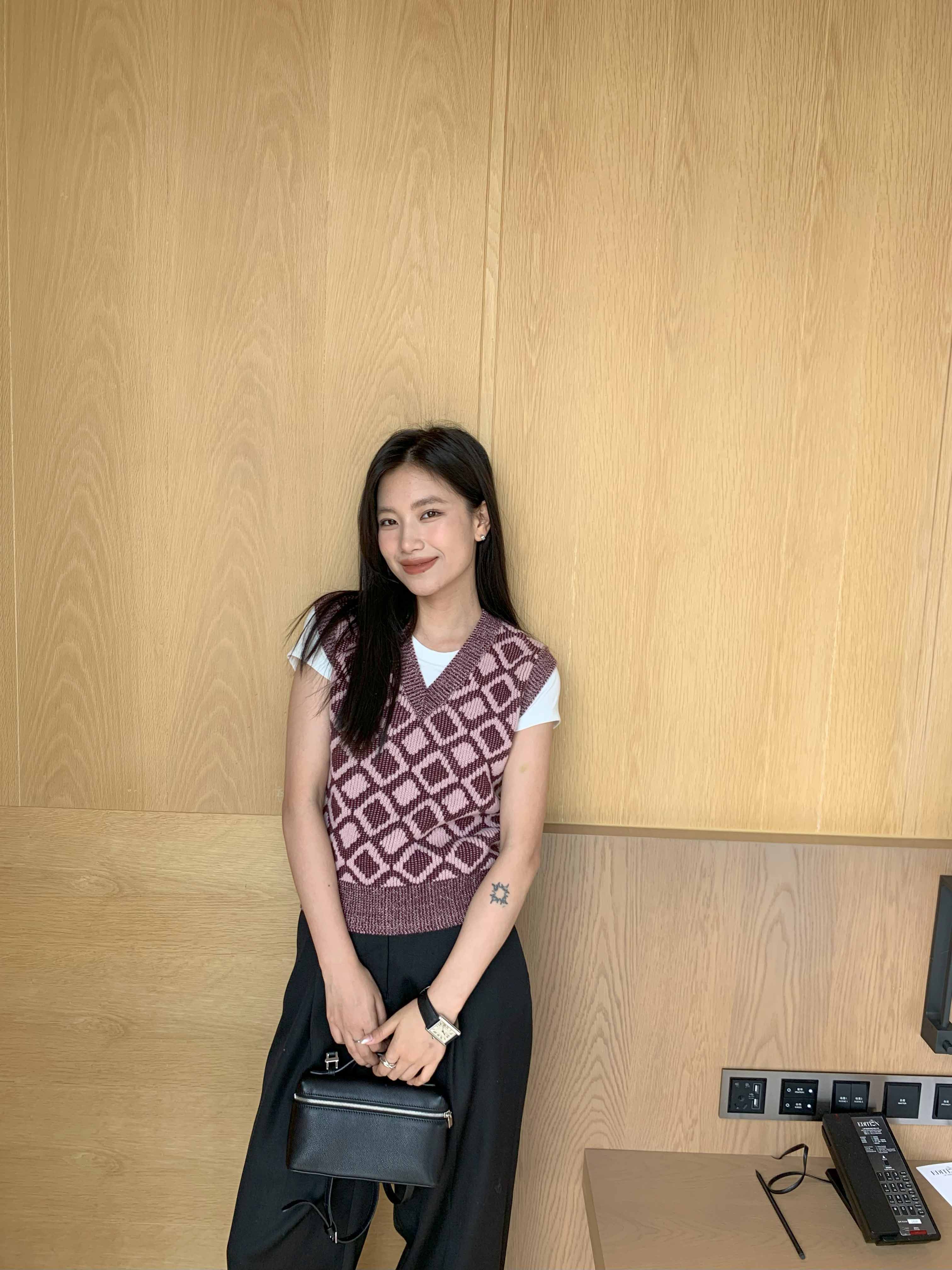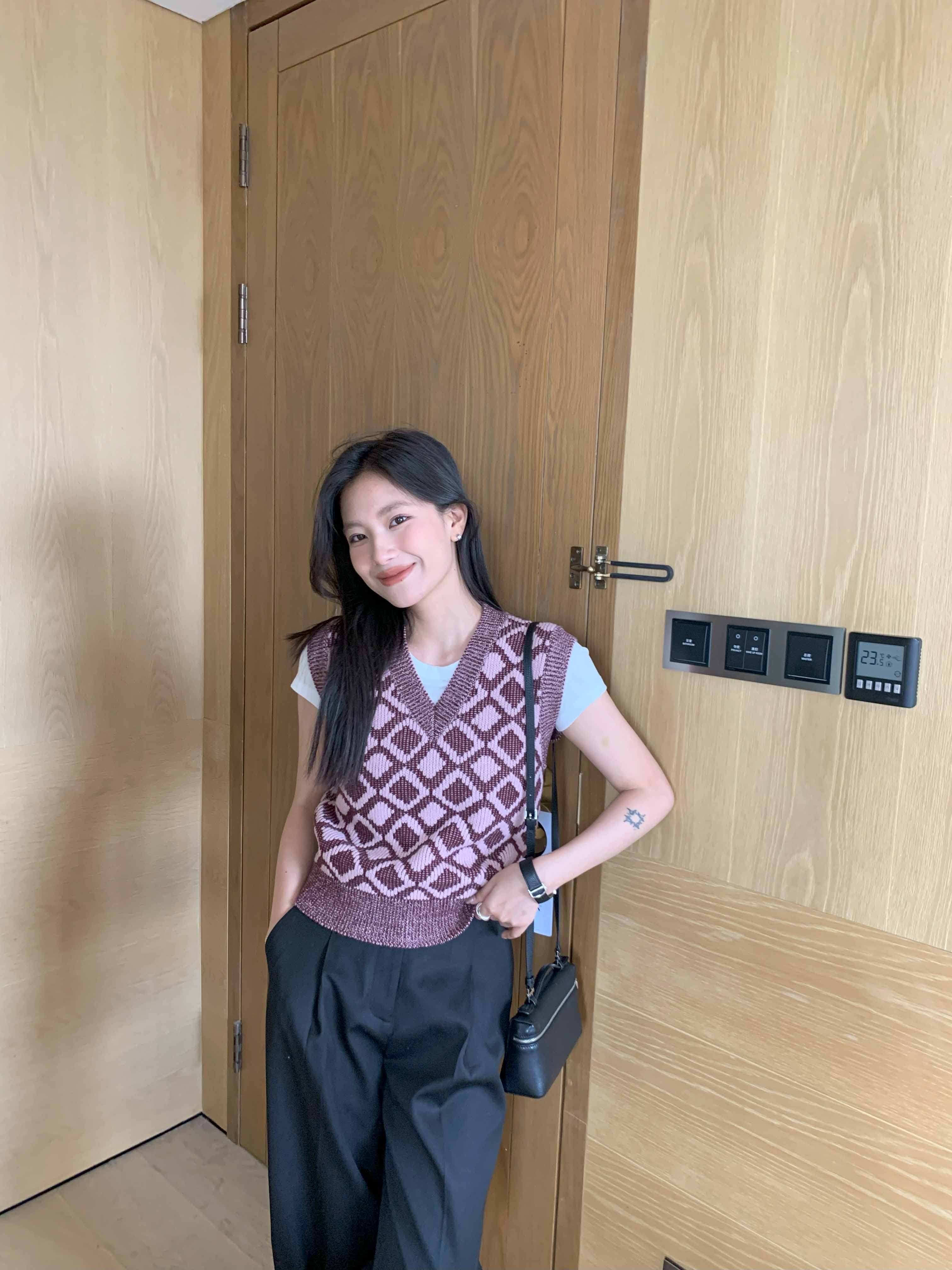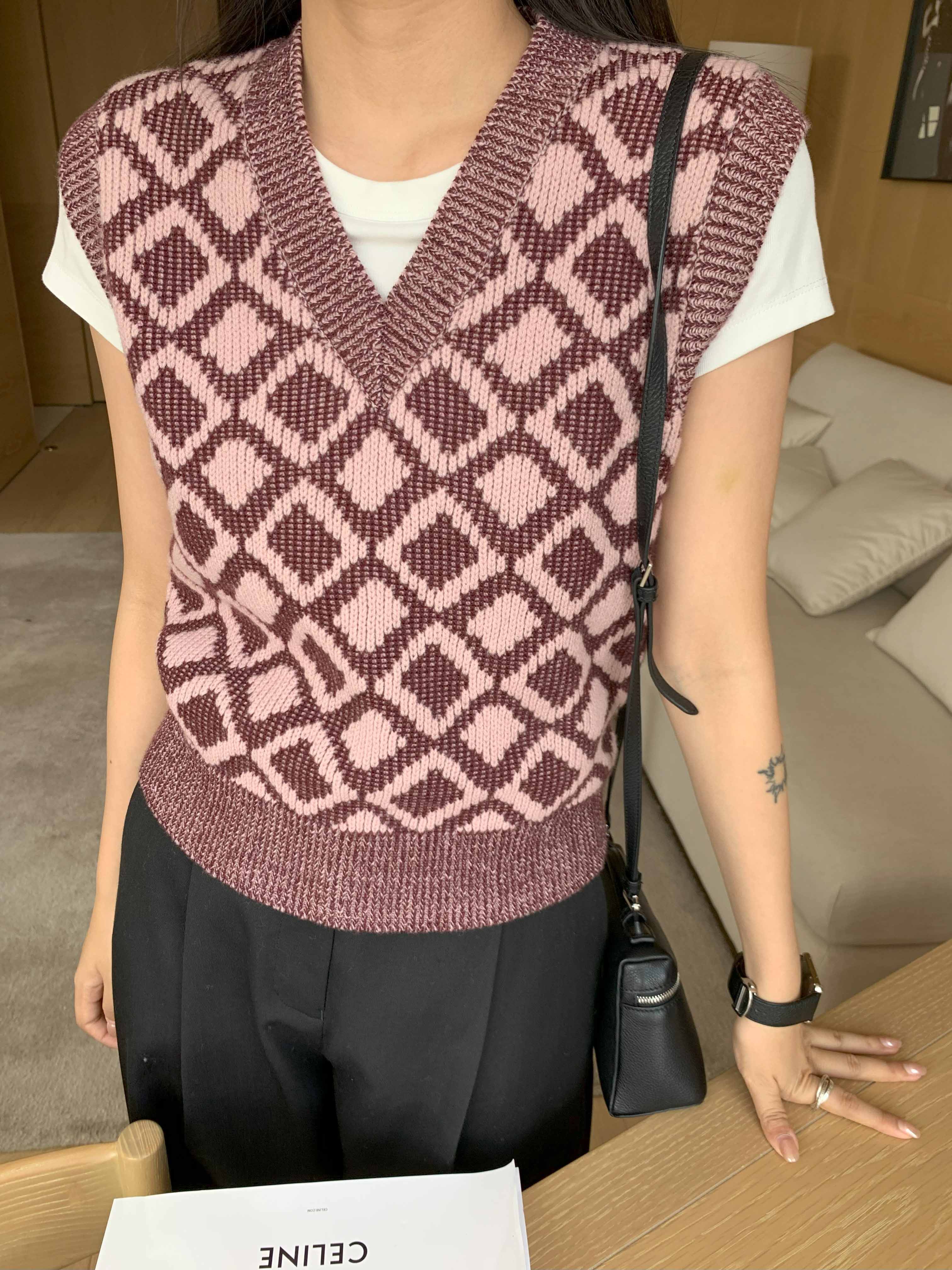 顺丰包邮洛诗琳35204秋冬纯羊毛经典棋盘格叠穿针织马甲160567