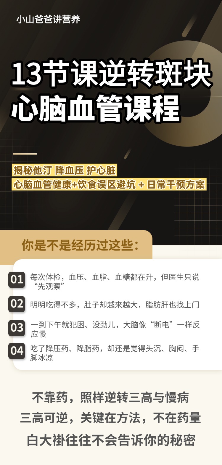 心脑血管课程 |共13课 小山爸爸教你 解逆转板块 解密他汀 降血压 护心脏