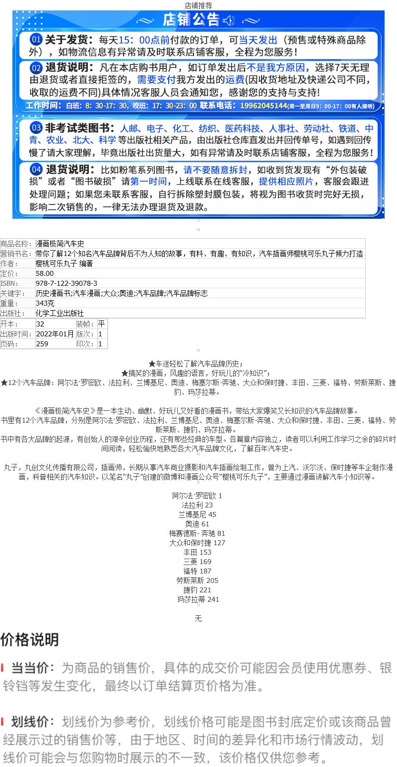 漫画极简汽车史 搞笑Q版漫画 12个知名汽车品牌创业发展史 汽车品牌艰辛创业史 汽车历史漫画书 汽车漫画 大众奥迪等汽车品牌标志 无 化学工业出版社 9787122390783