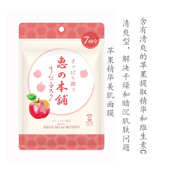 惠本铺新品 温泉水无添加水果面膜 补水保湿7片装 苹果