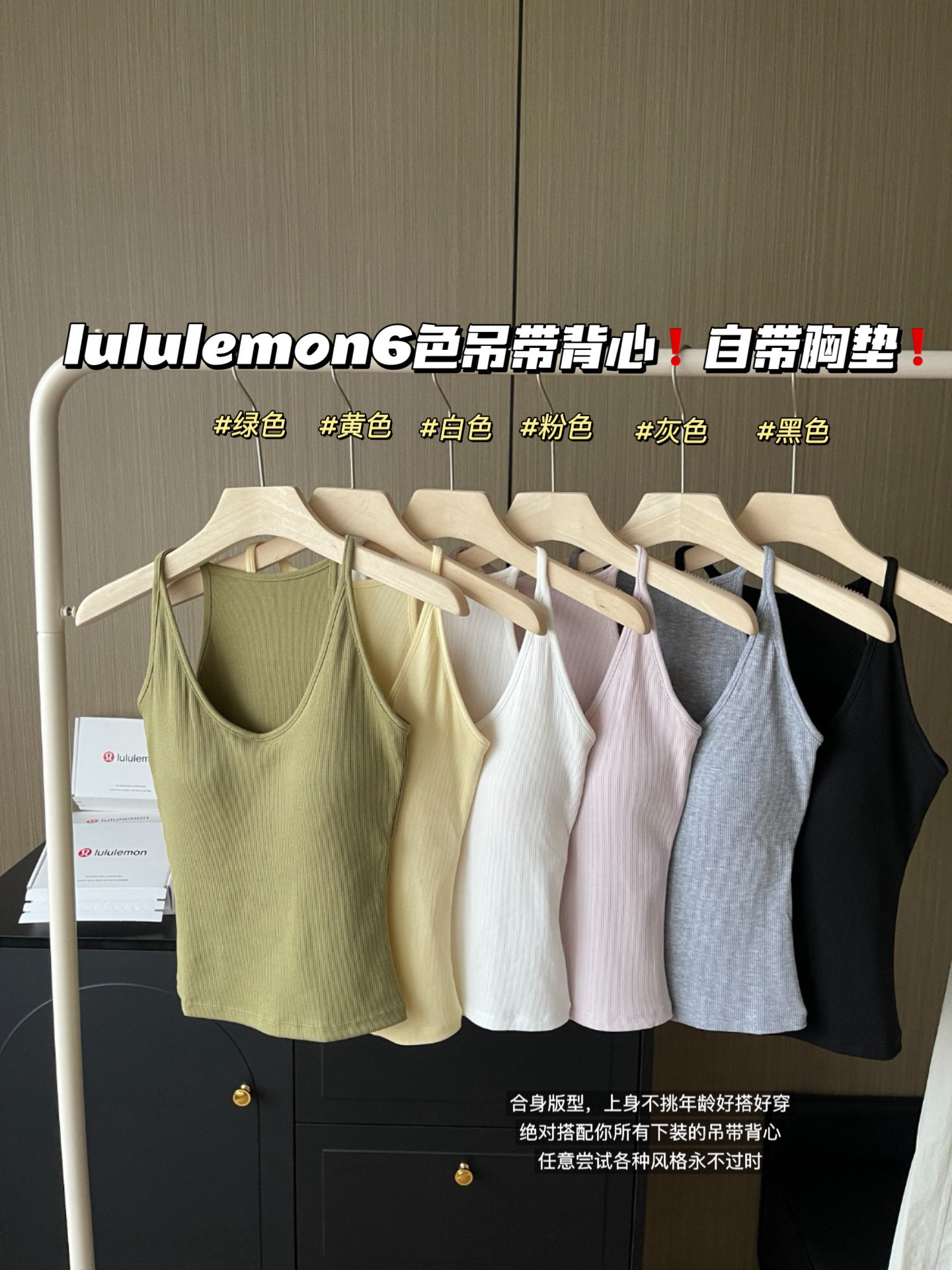 lululemon6色吊带背心!自带胸垫~