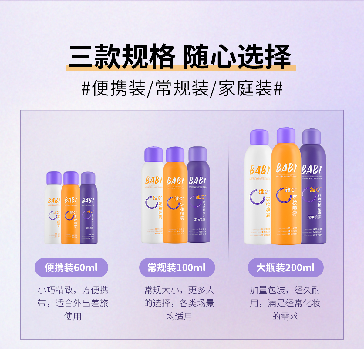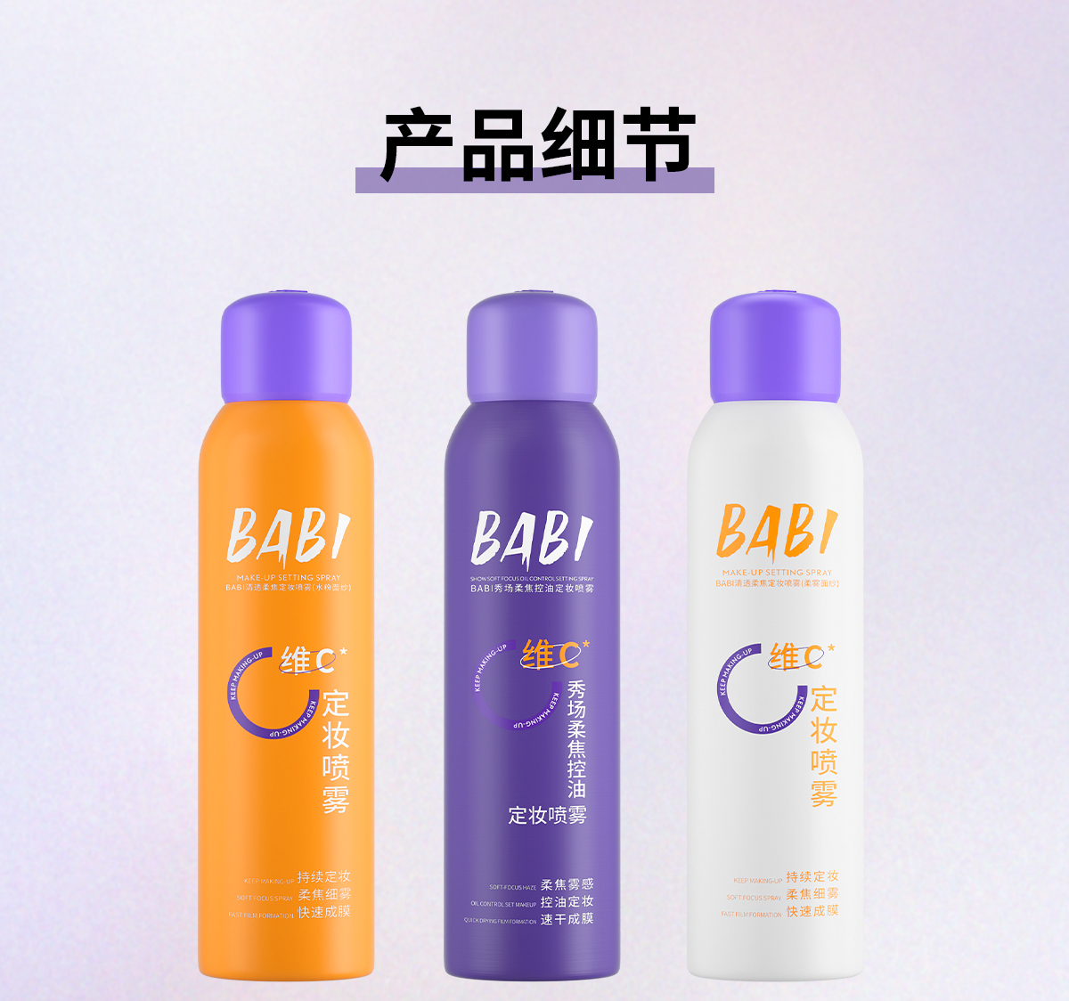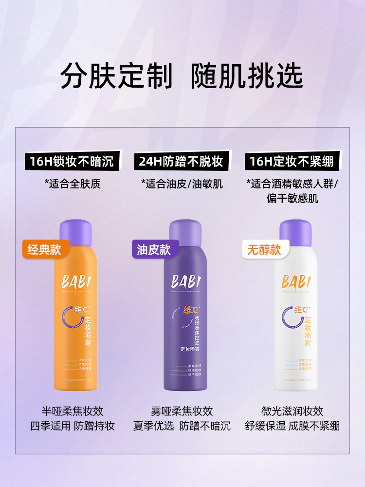【热卖款】BABI定妆喷雾VC持久控油防水防汗不脱妆维C干油皮120ml(大容量)网络版本是100ml