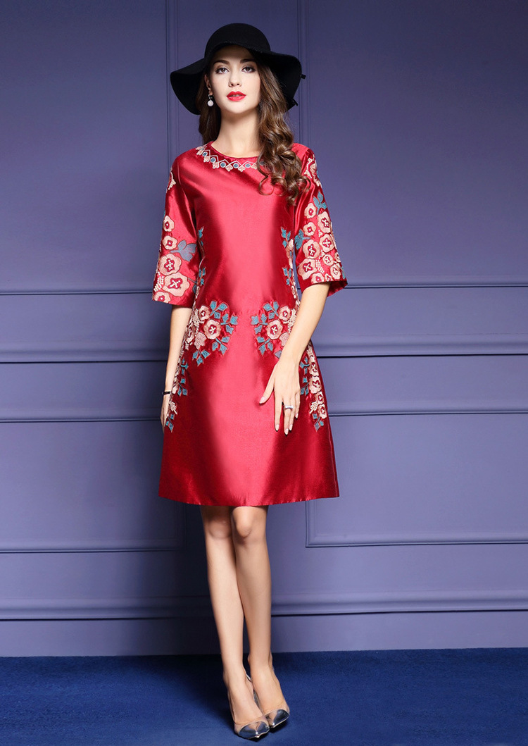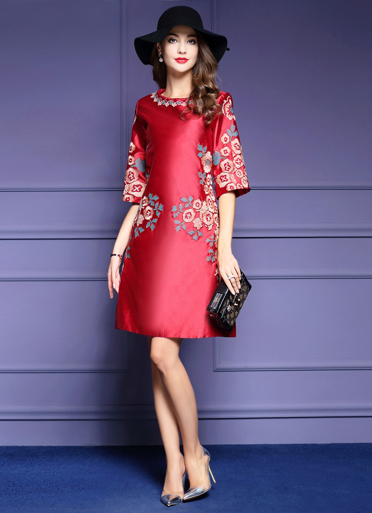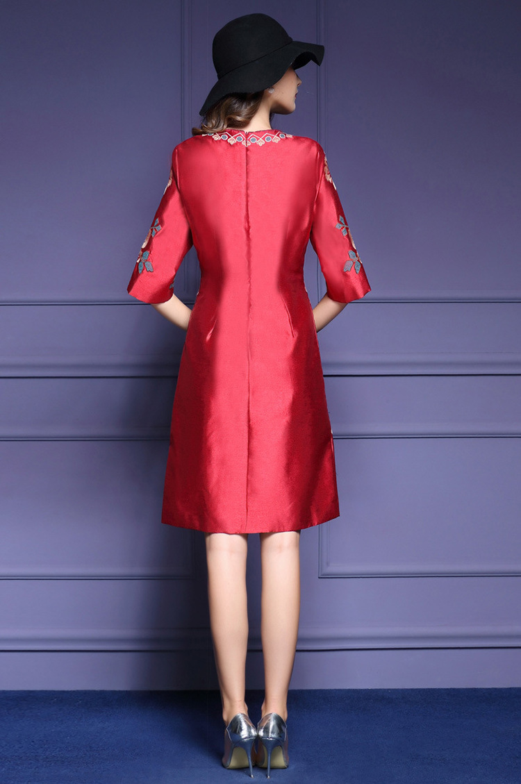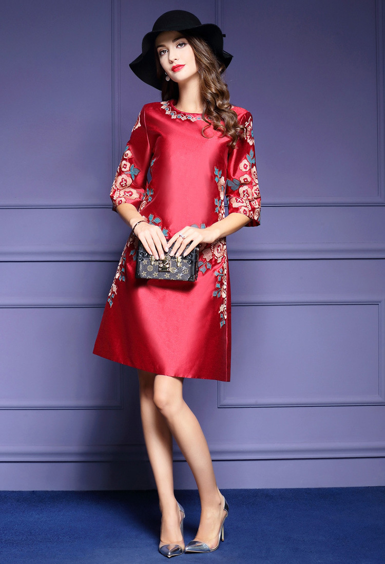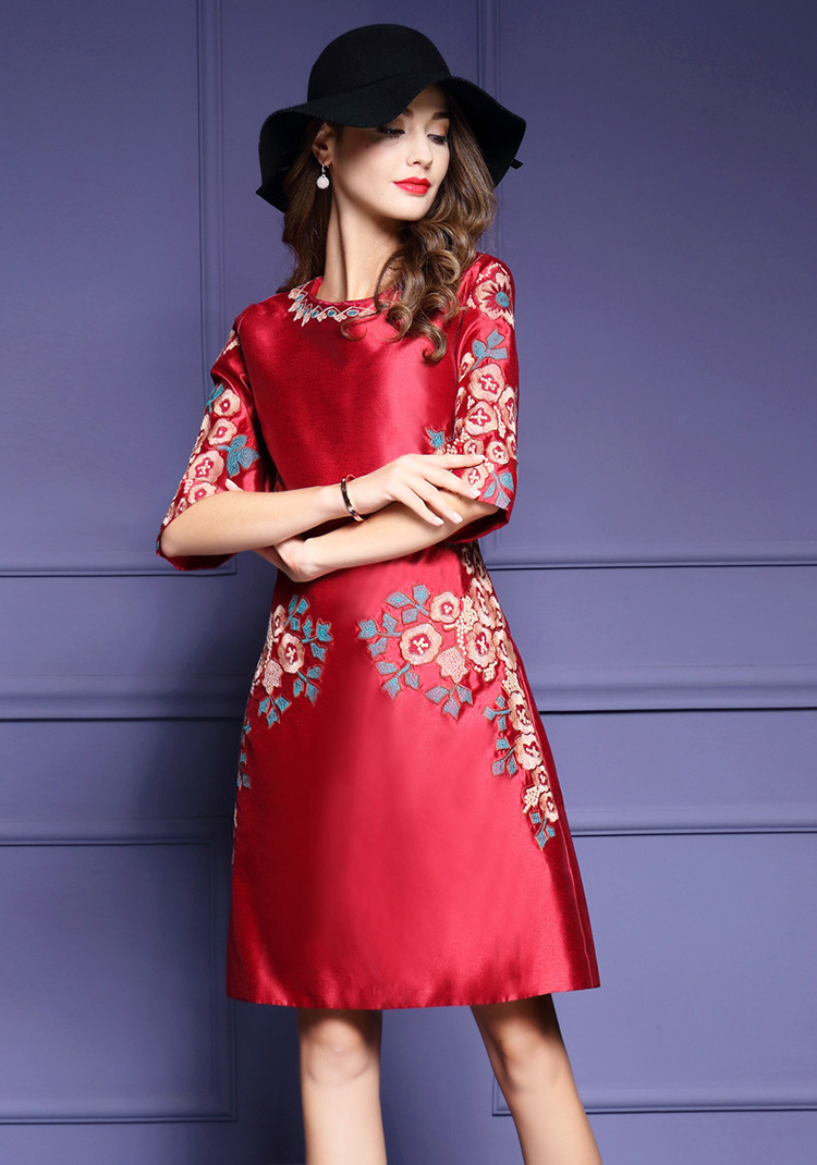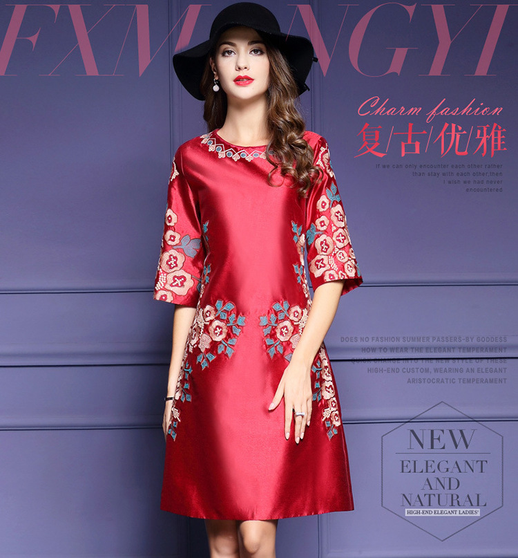 HXYY-A425新款民族风重工刺绣花七分袖连衣裙