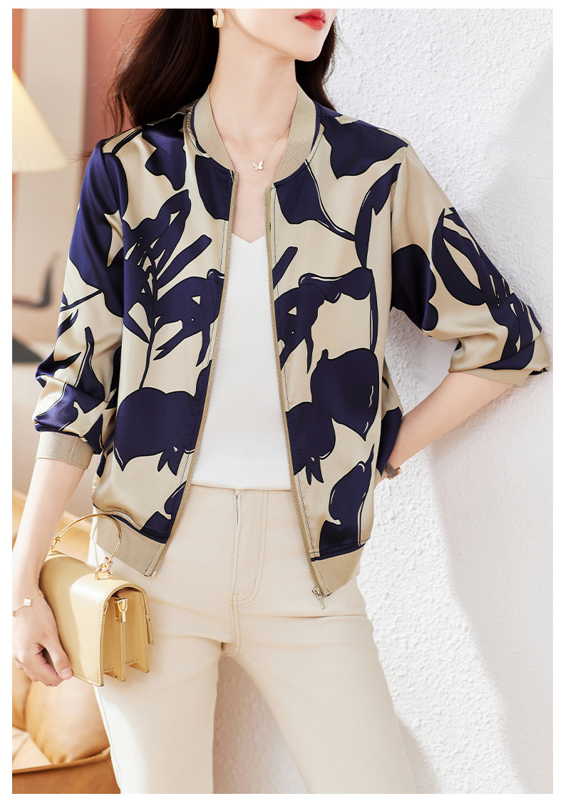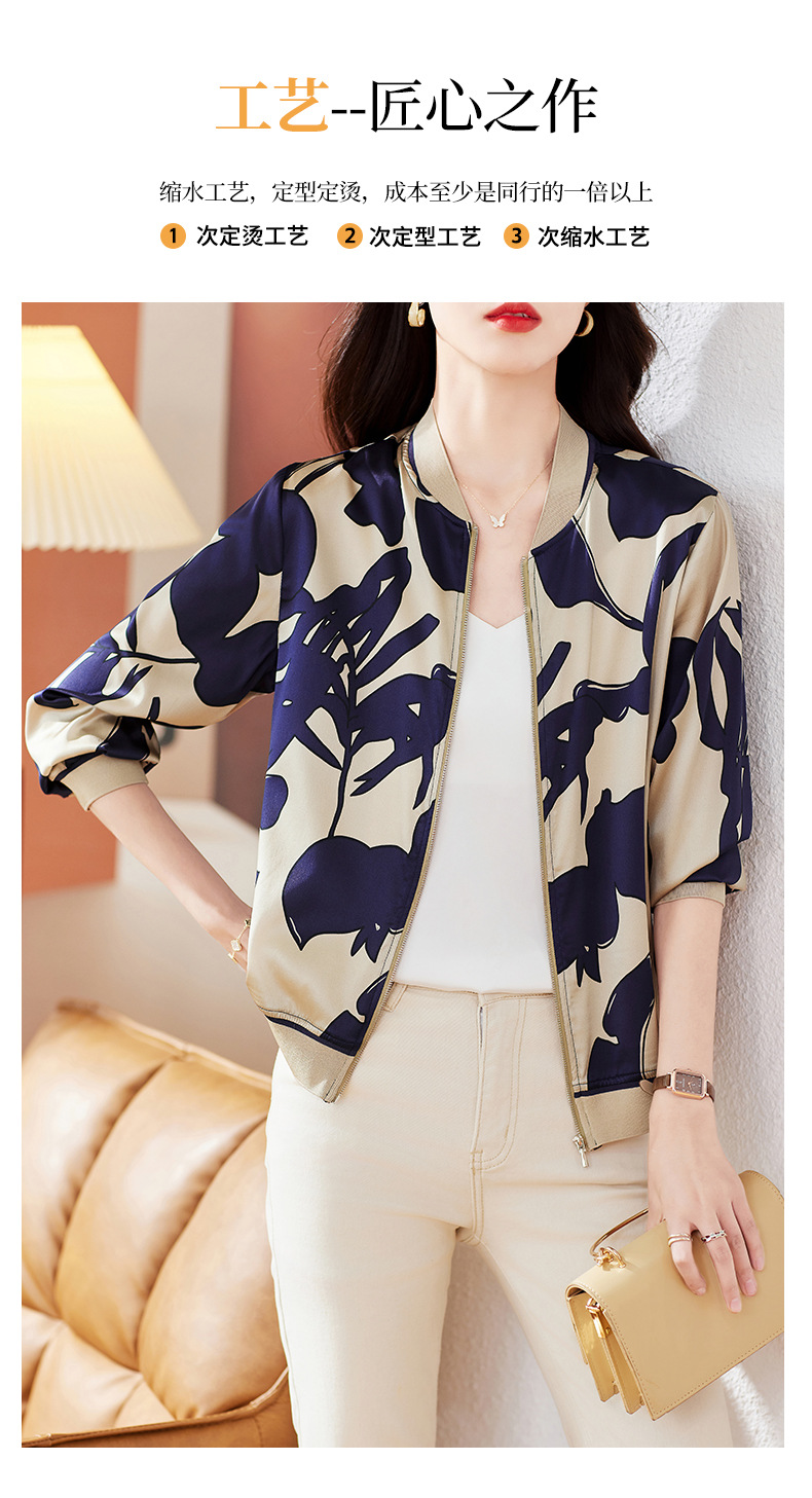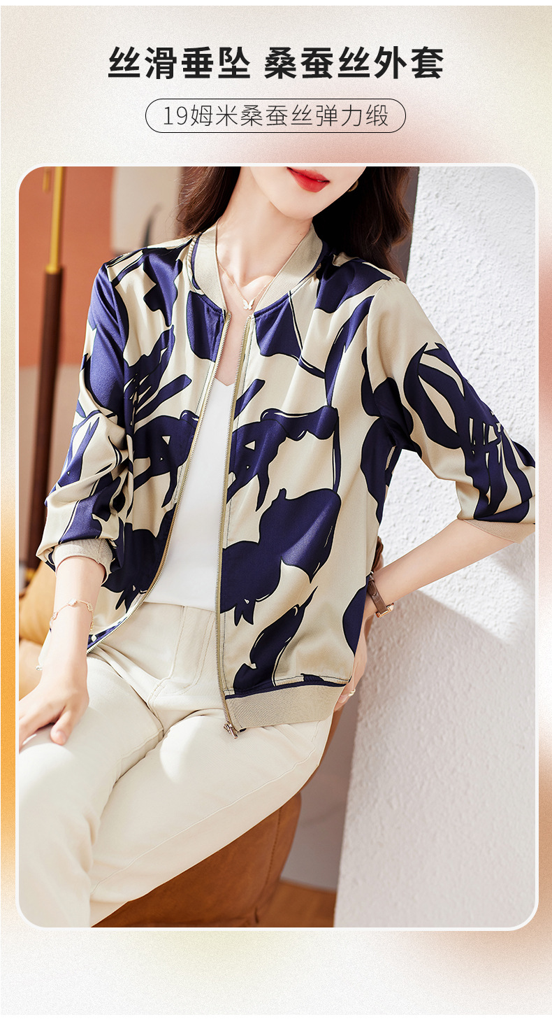 丁摩 重磅真丝短外套棒球服桑蚕丝上衣1085