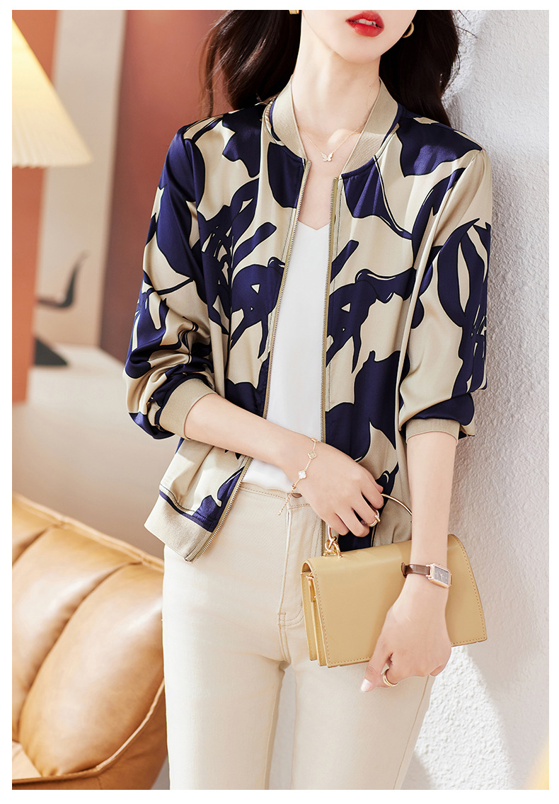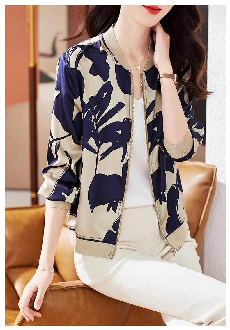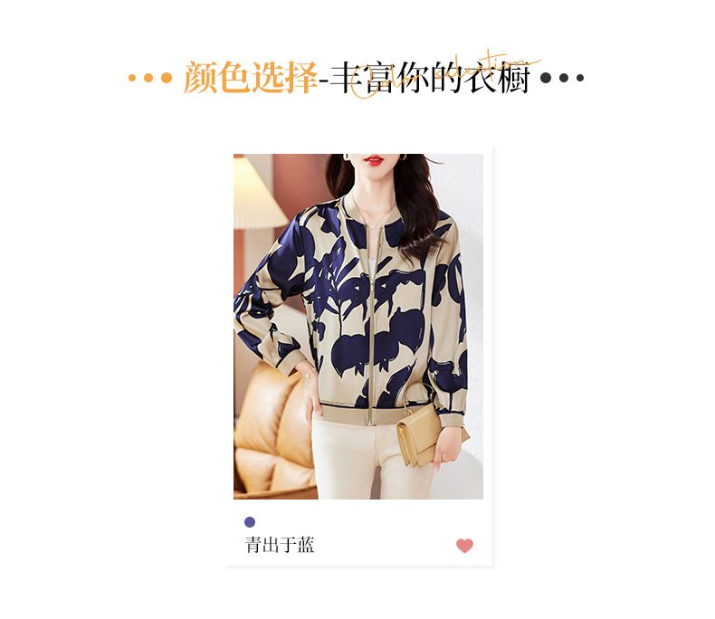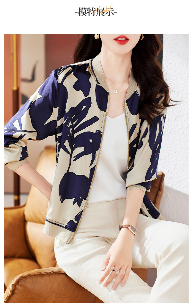 丁摩 重磅真丝短外套棒球服桑蚕丝上衣1085