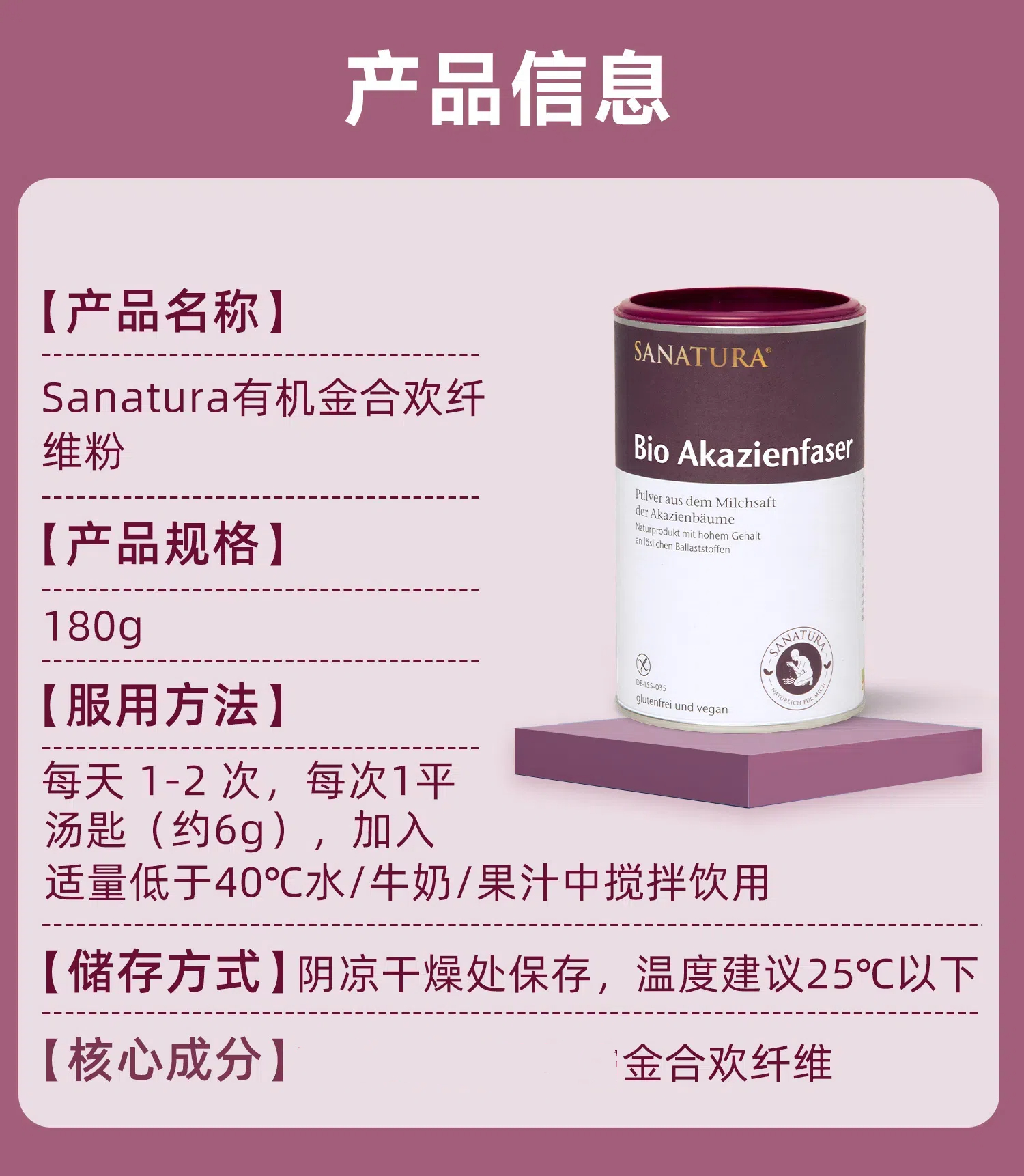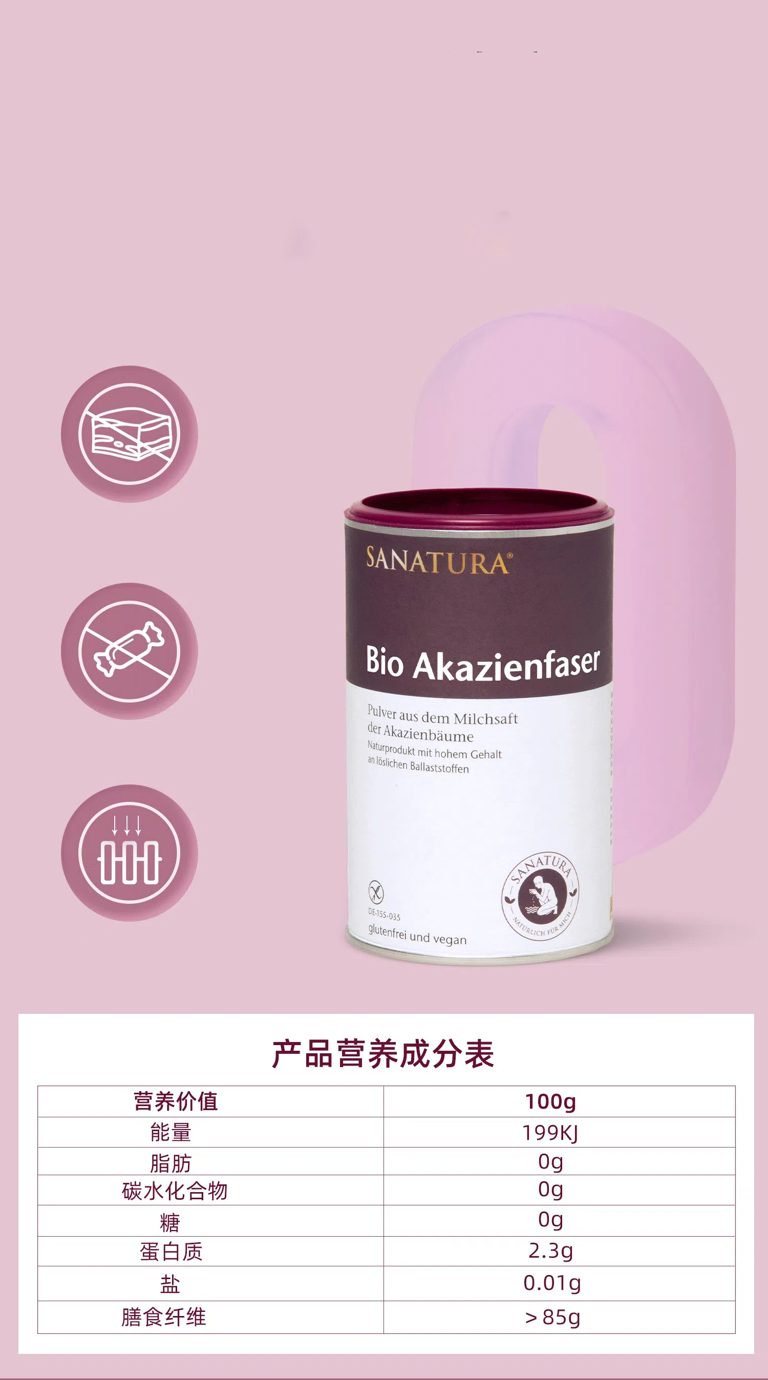 【跨境】德国SANATURA 桑乐达金合欢膳食纤维粉 180G