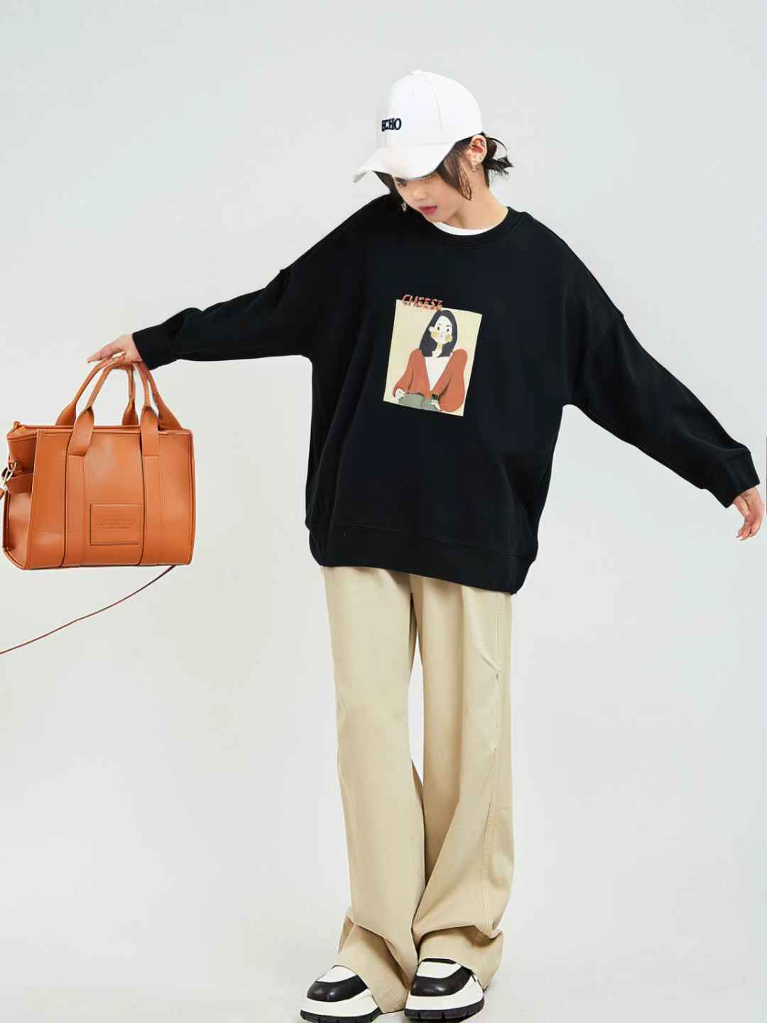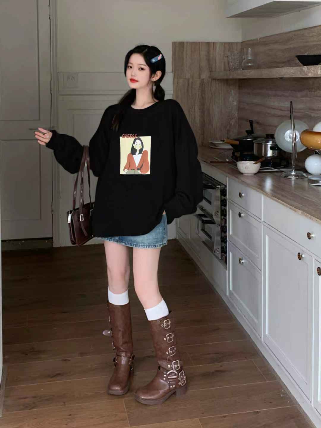 【诗铭洛可】W677印花卫衣加绒长袖秋冬卫衣-B19-1