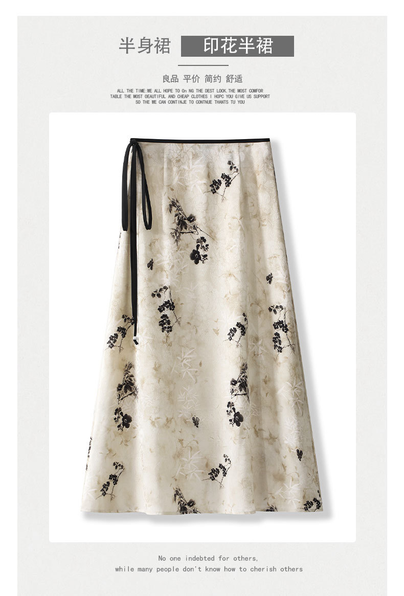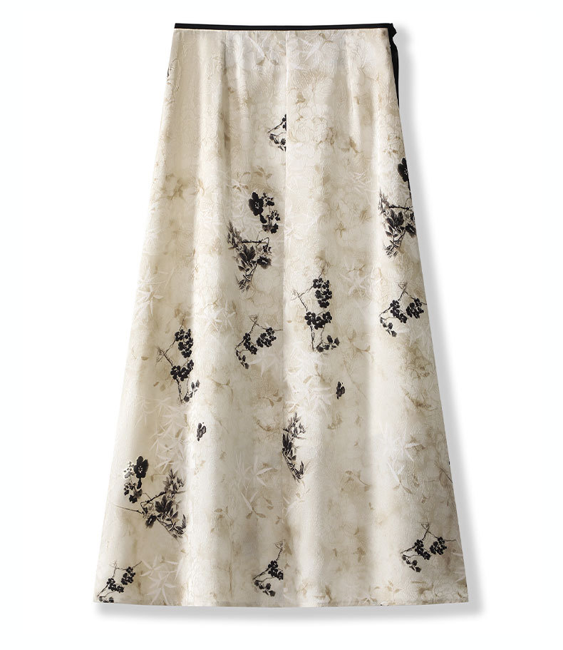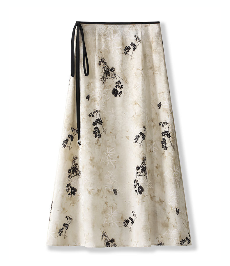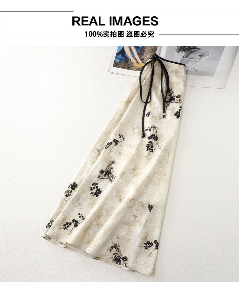 丁摩 国风水墨画醋酸半身裙女春夏季新款垂坠感气质长裙高腰A字型裙5ZF-32593