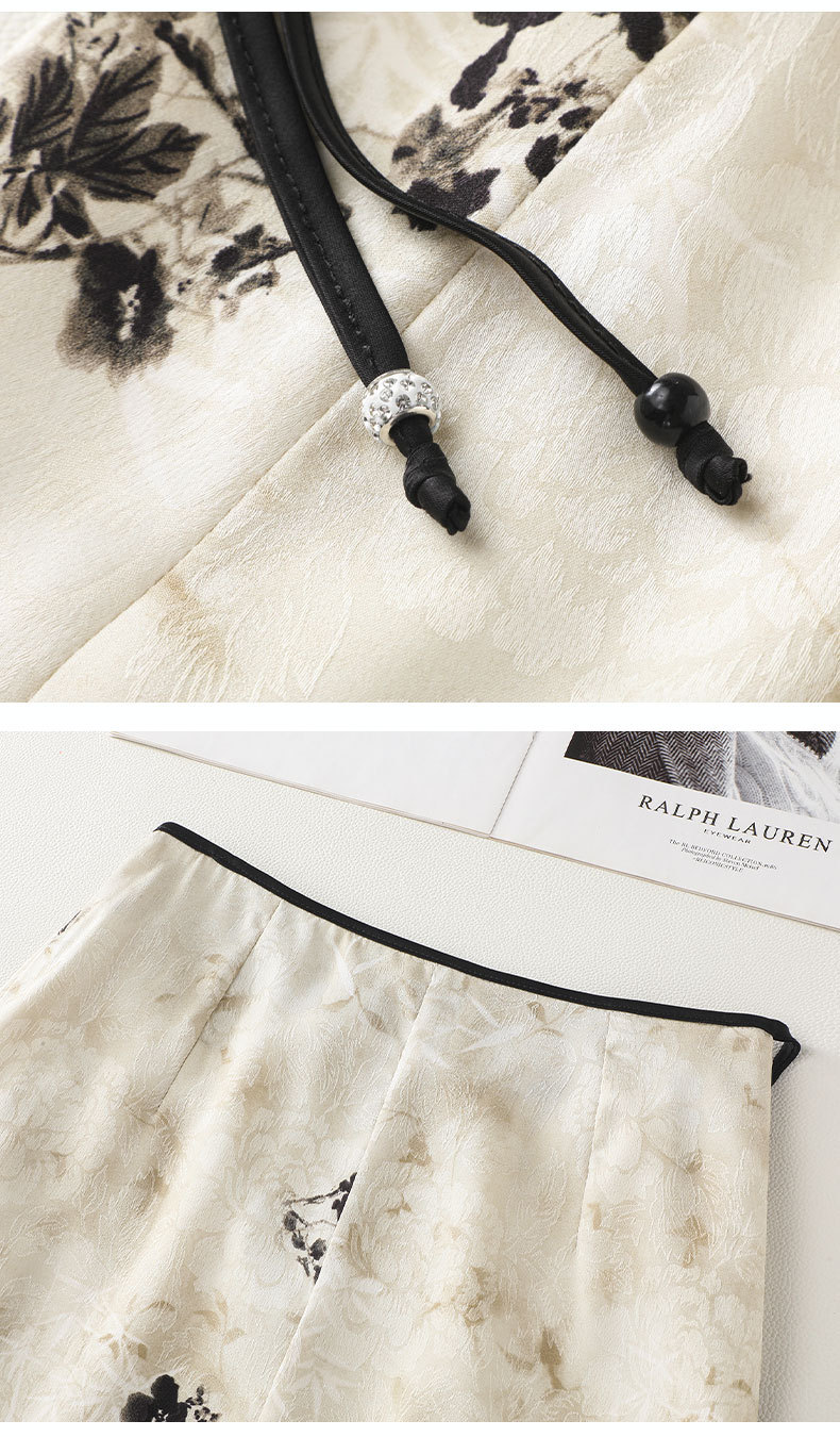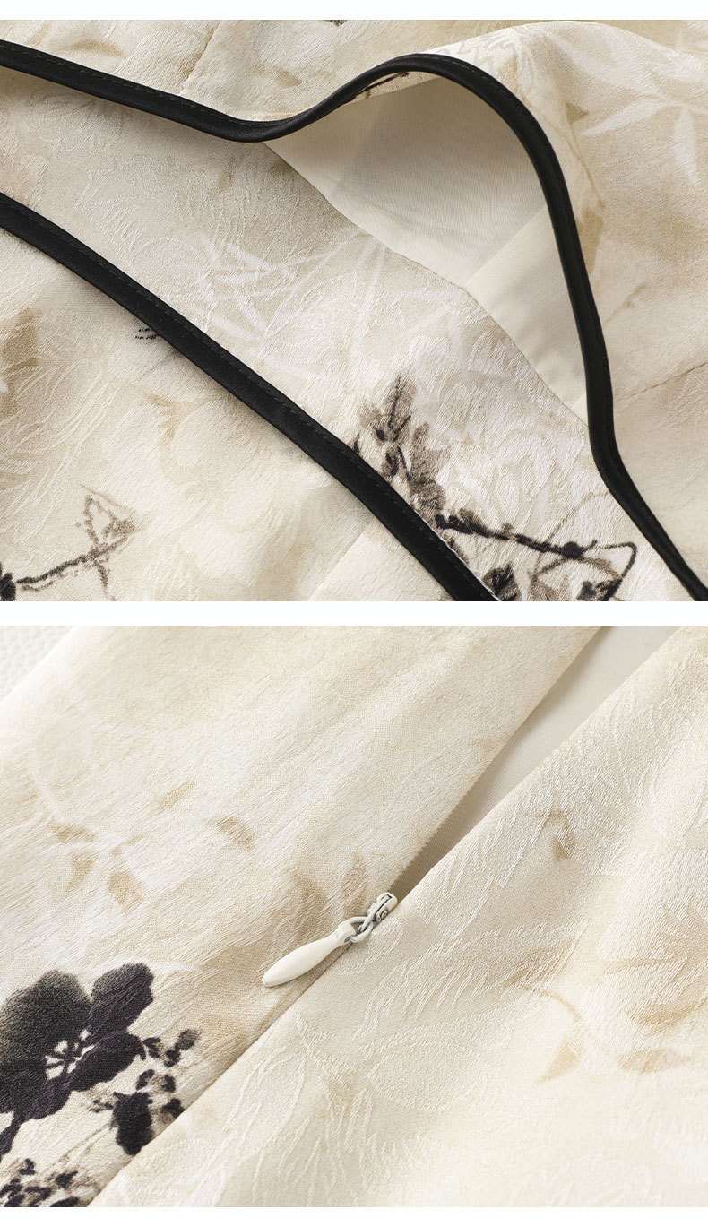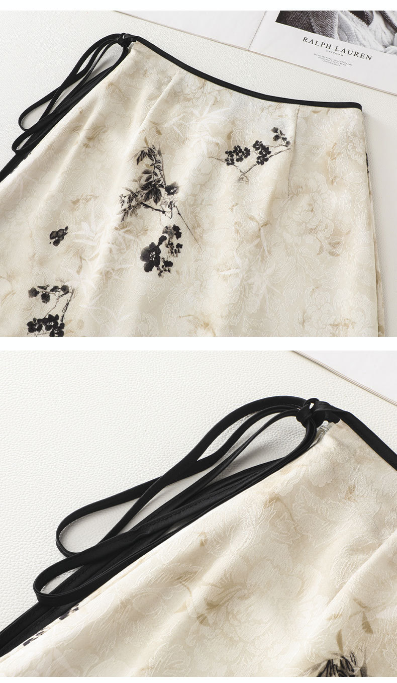 丁摩 国风水墨画醋酸半身裙女春夏季新款垂坠感气质长裙高腰A字型裙5ZF-32593