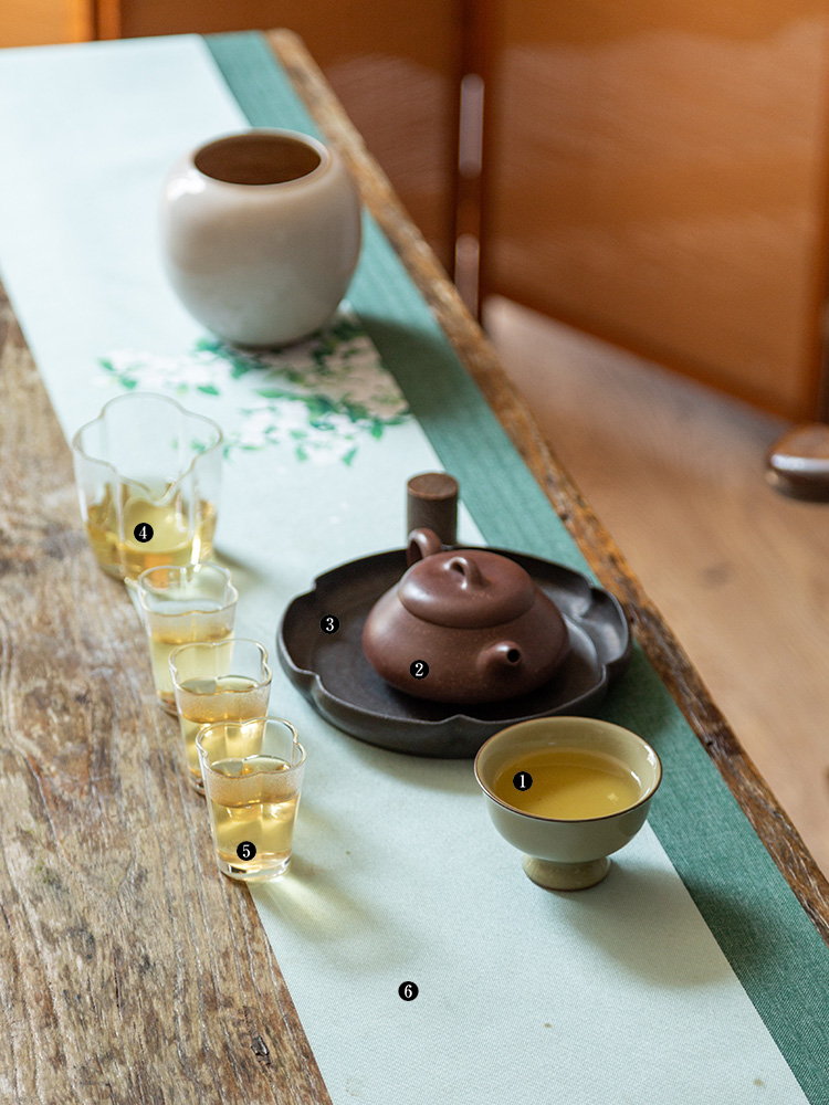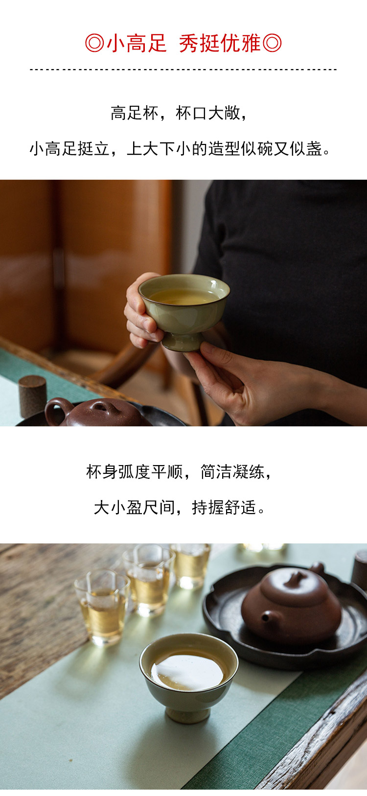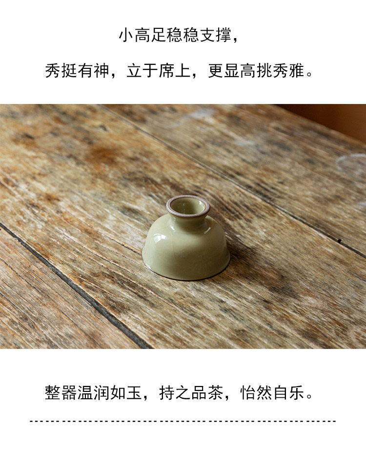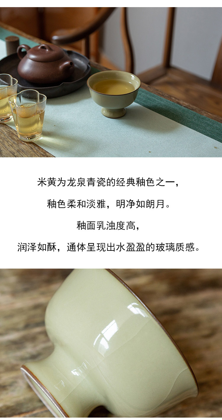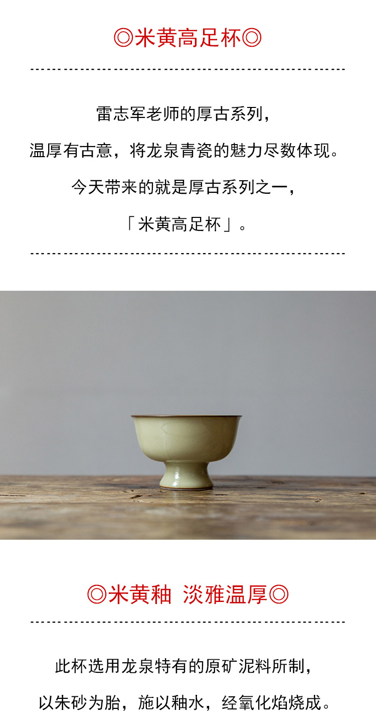 茶香记 雷志军厚古系列米黄高足杯100ml品茗杯龙泉青瓷开片茶杯