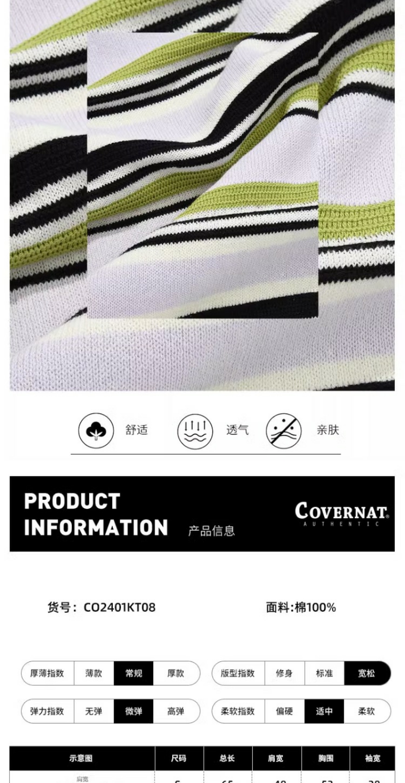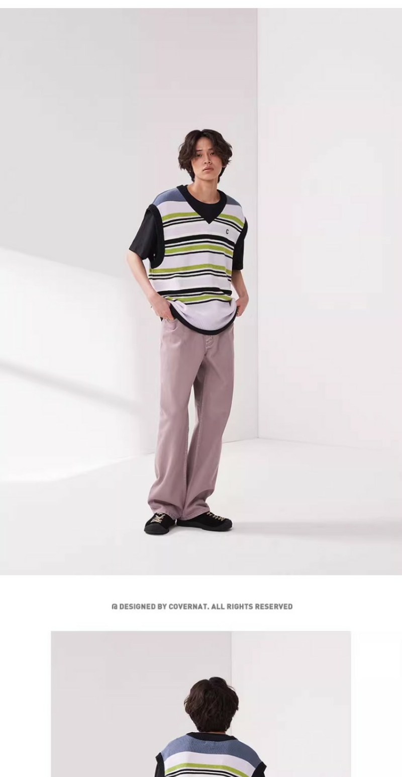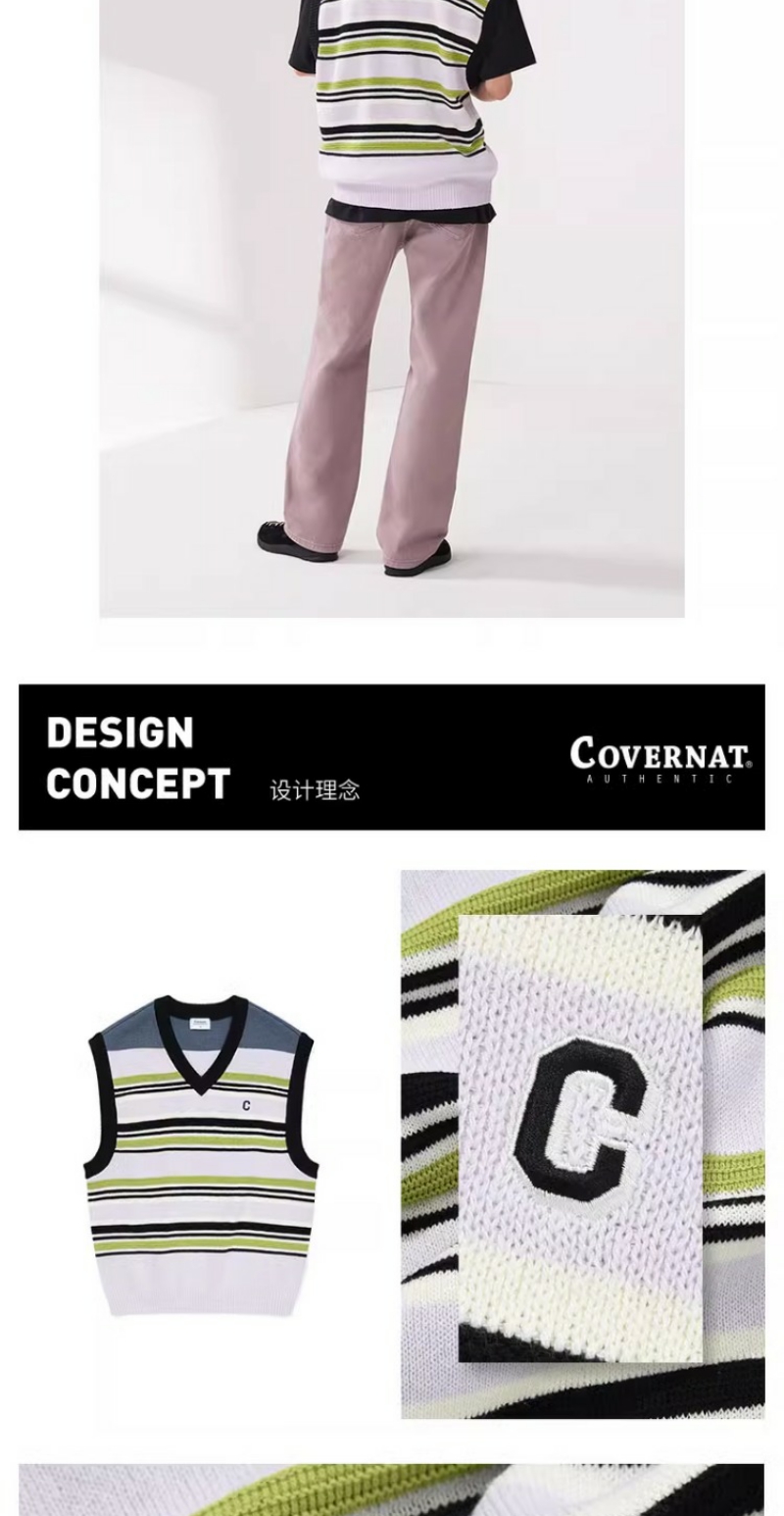 Covernat2024春季新款叠穿针织背心条纹内搭减龄情侣款CO2401KT08