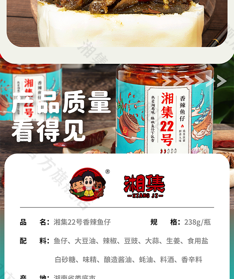 湘集22号香辣鱼仔湖南小鱼仔网红下饭菜即食瓶装豆豉辣椒酱