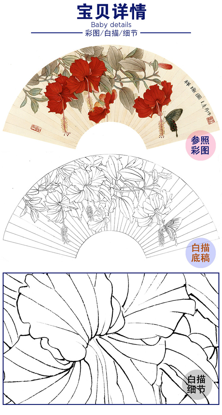 工笔花鸟白描底稿-王庆升《祥瑞图》扇面小品-多种白描尺寸可选-SL08
