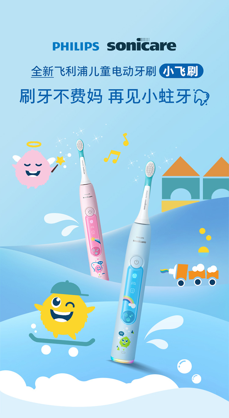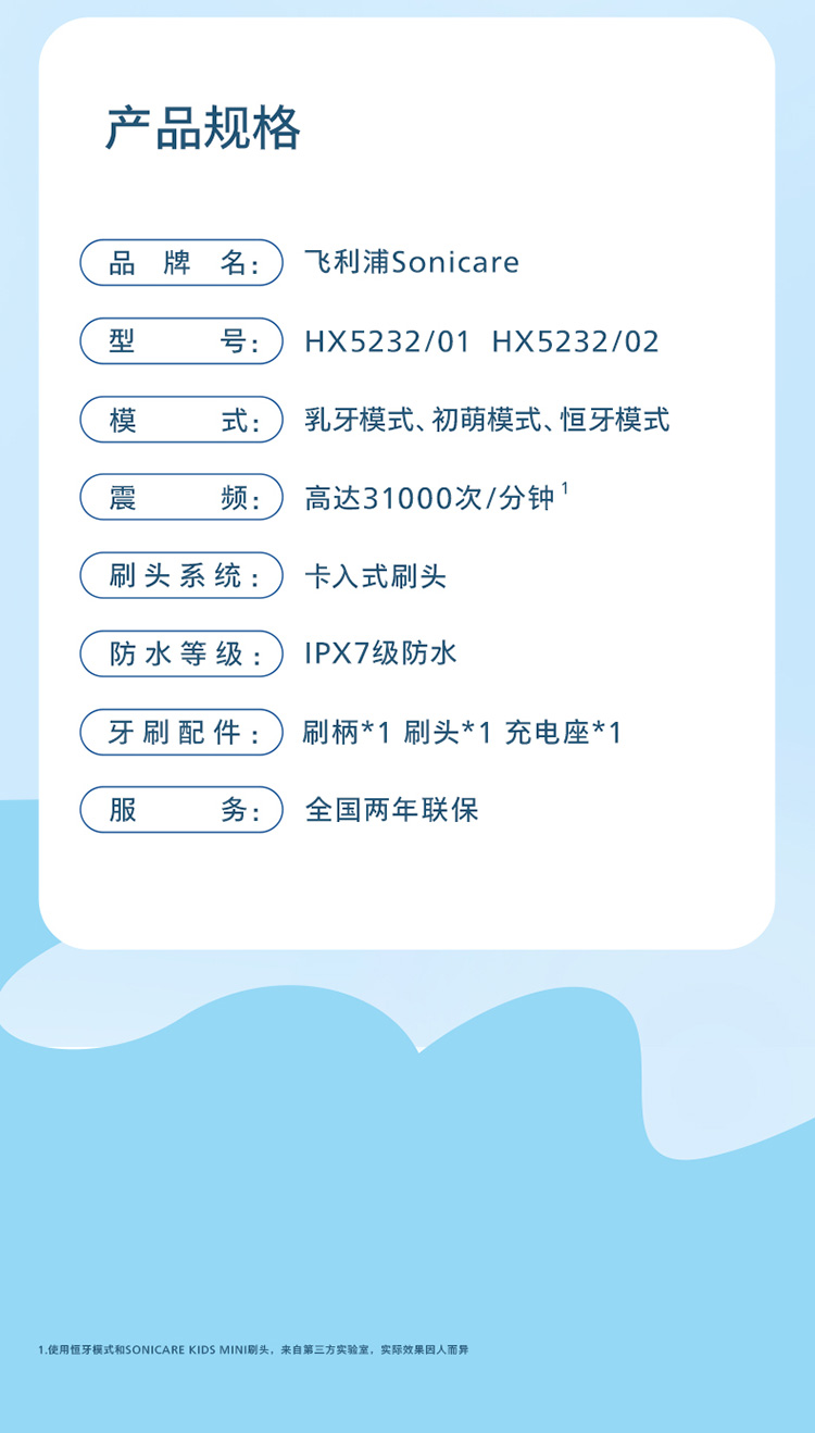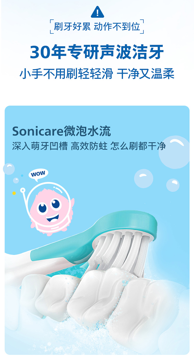 飞利浦PHILIPS电动牙刷儿童电动牙刷小飞刷声波宝宝软毛刷儿童生日礼物HX5232/02