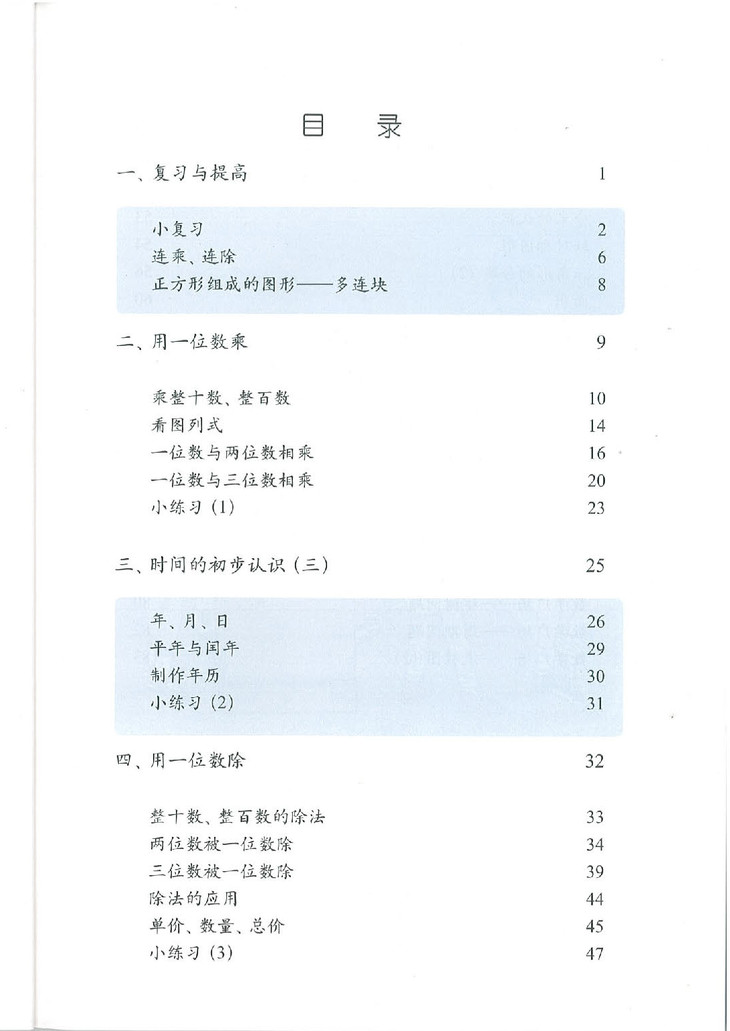 数学 课本 三年级第一学期(附练习部分)(上海版)