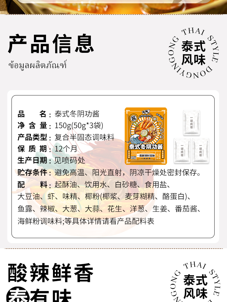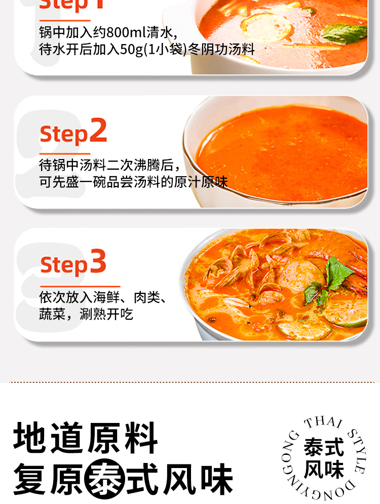 泰式冬阴功汤料泰国冬荫功汤酱 火锅底料米线 汤底配料调料包家用