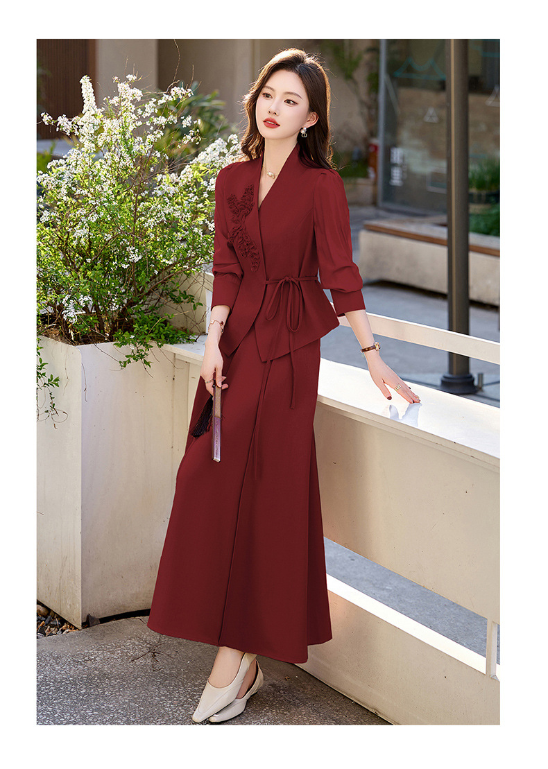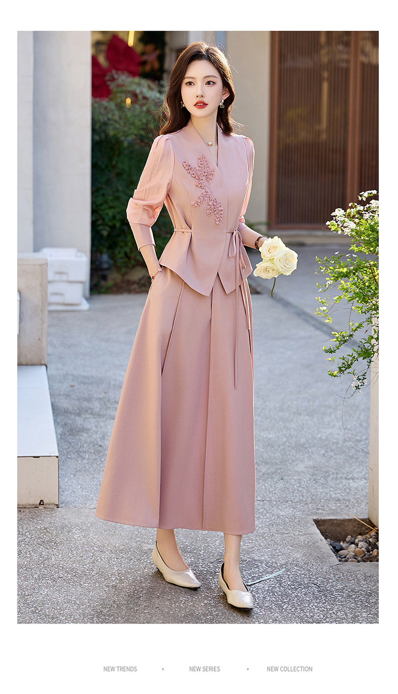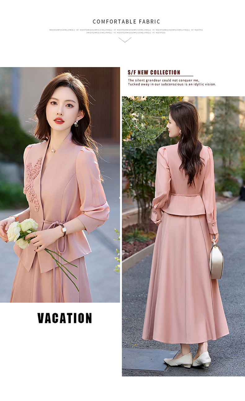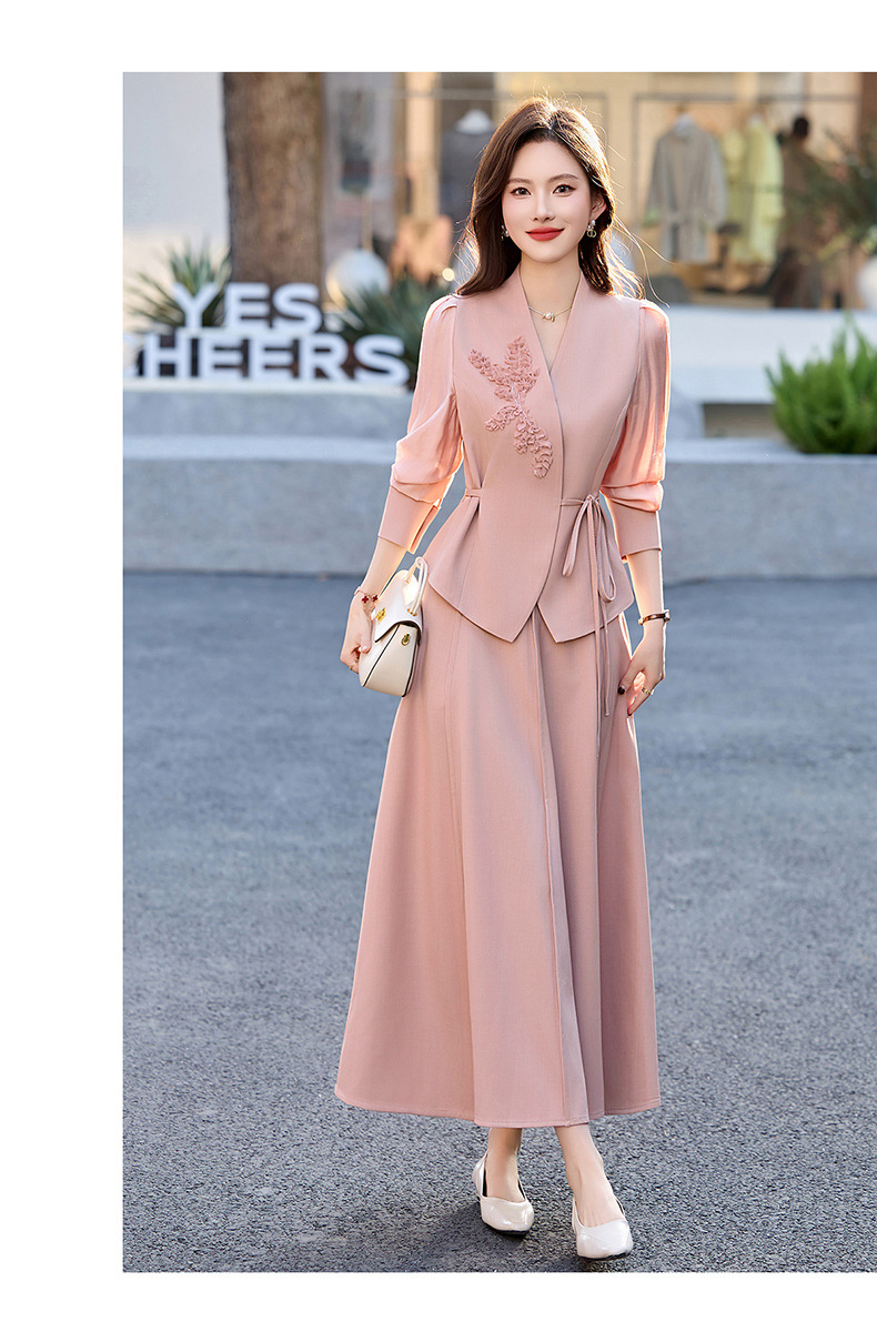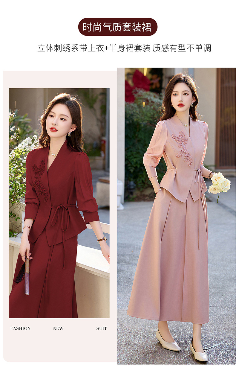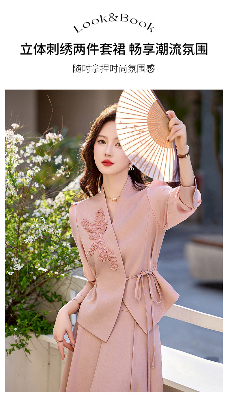 JX2513时尚休闲套装2025春夏新款时髦立体刺绣花朵外套半裙两件套
