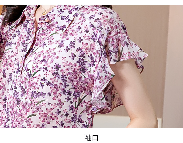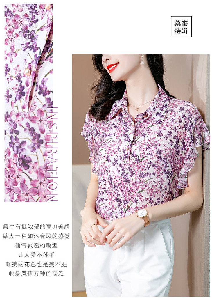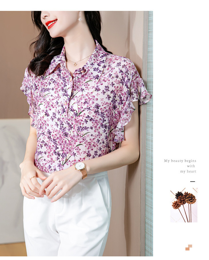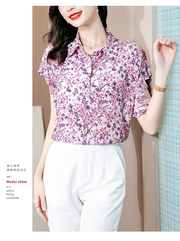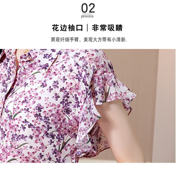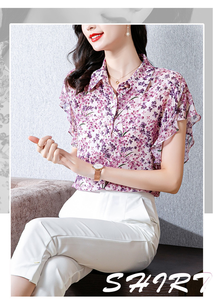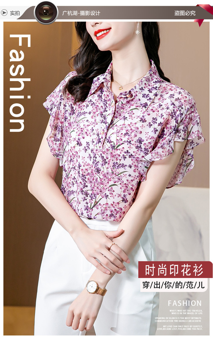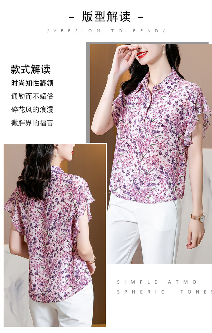 MZ104409夏设计感上衣复古港味港风花网红碎花短袖雪纺衬衫衬衣