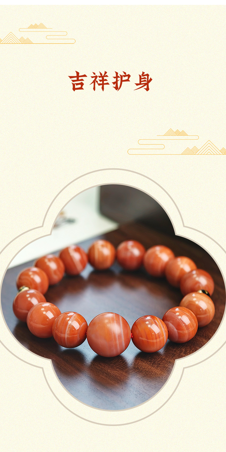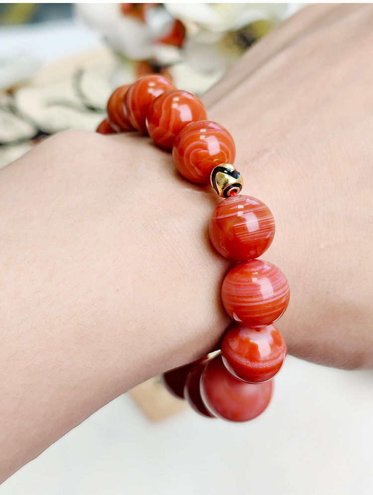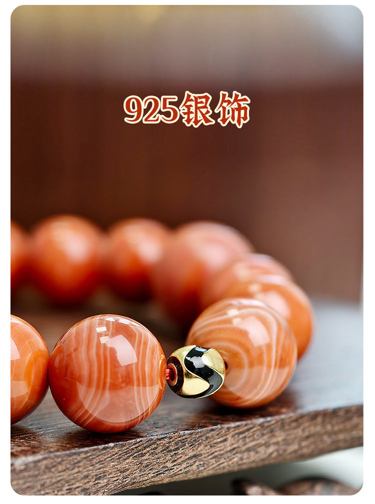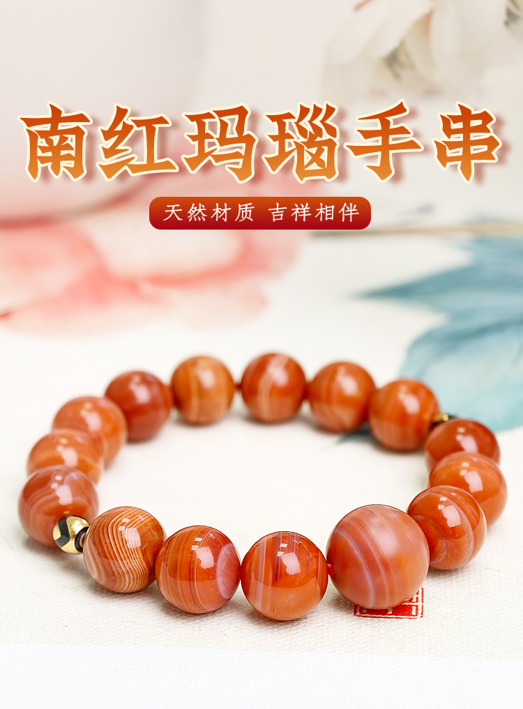 易祈吉祥天然南红玛瑙手串925银配饰手链文玩属火系列饰品送礼礼物