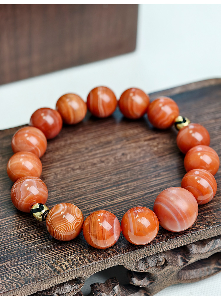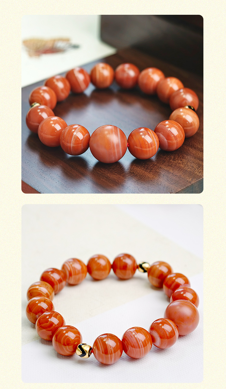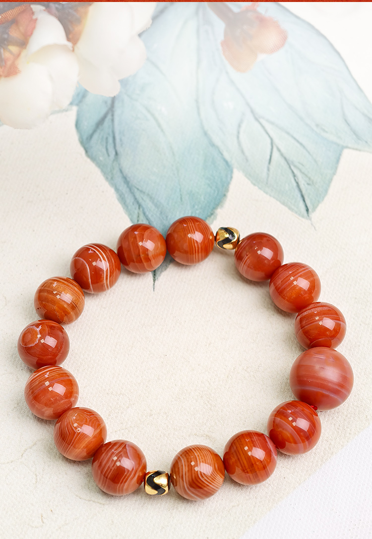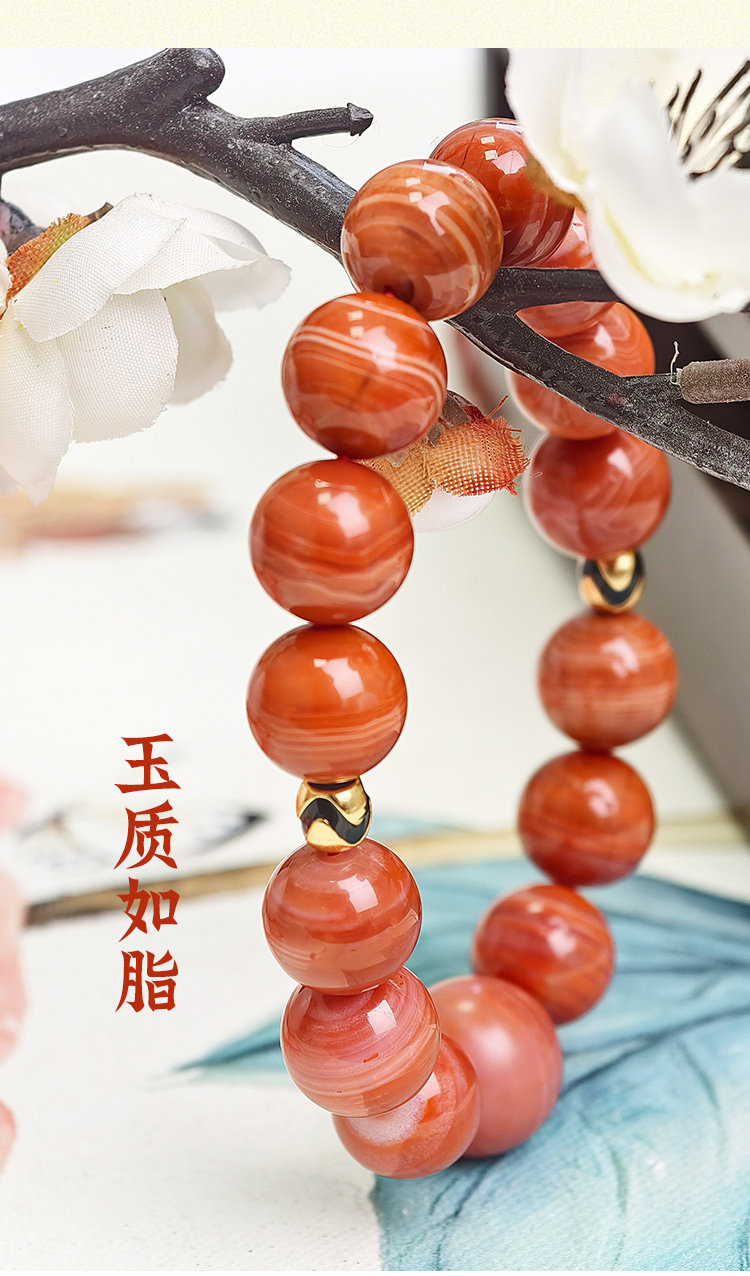 易祈吉祥天然南红玛瑙手串925银配饰手链文玩属火系列饰品送礼礼物