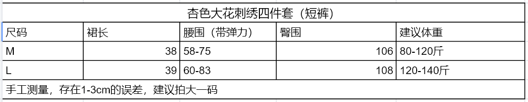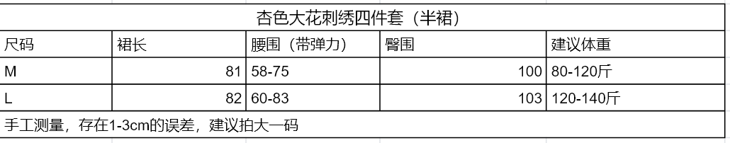 尺码:M(具体参考尺码表),L(具体参考尺码表)