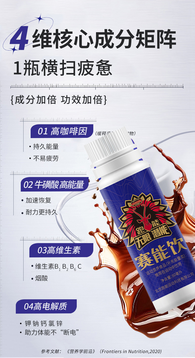 (1瓶跑半程2瓶跑全程)跑能私补壹号-复合能量饮/高能量+牛磺酸+左旋肉碱+红甜菜粉/多效合一