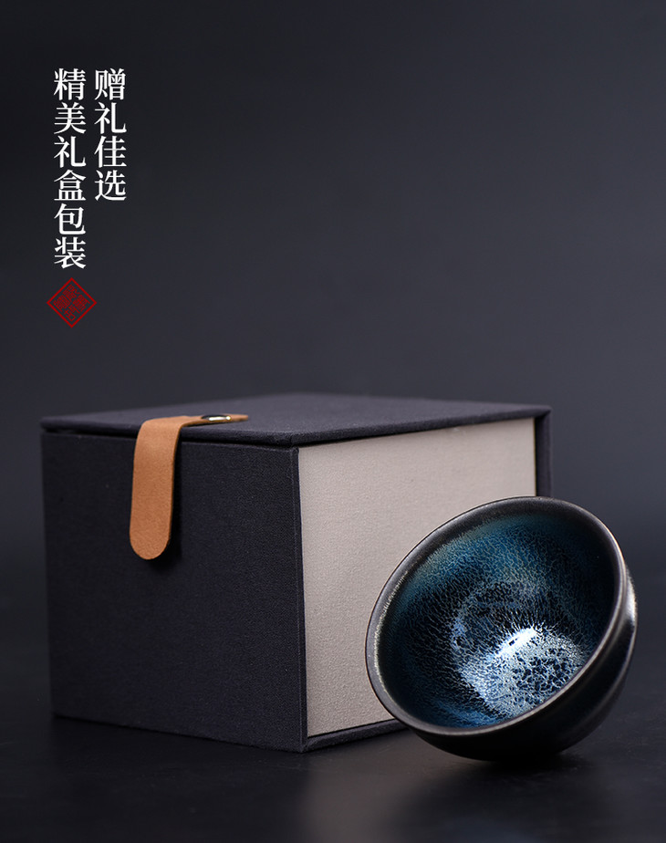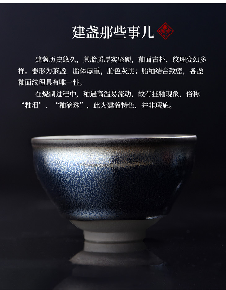 茶杯-陶瓷品茗杯-建盏-铁胎蓝麒麟建盏