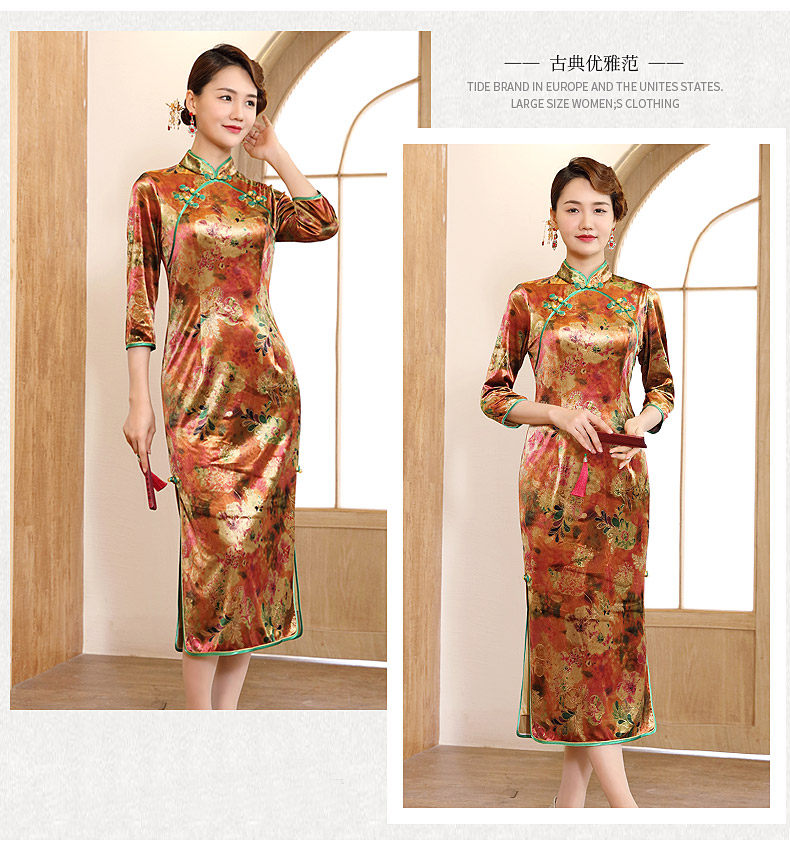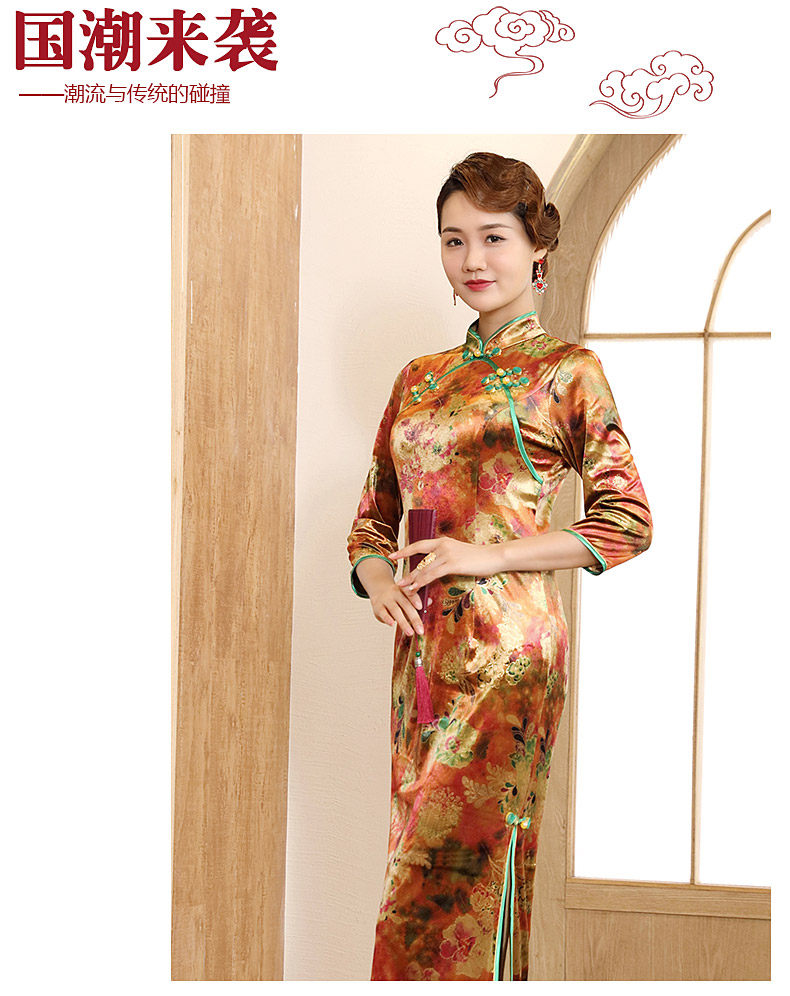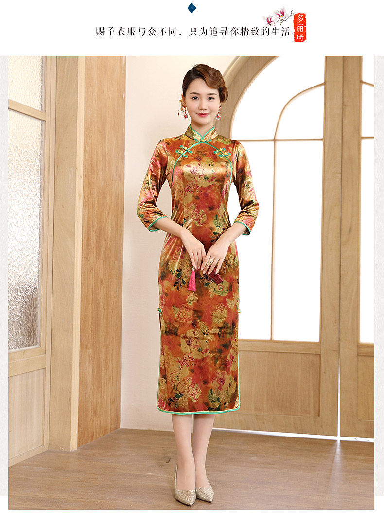 DLQ-A2690中国风印花复古旗袍改良版连衣裙