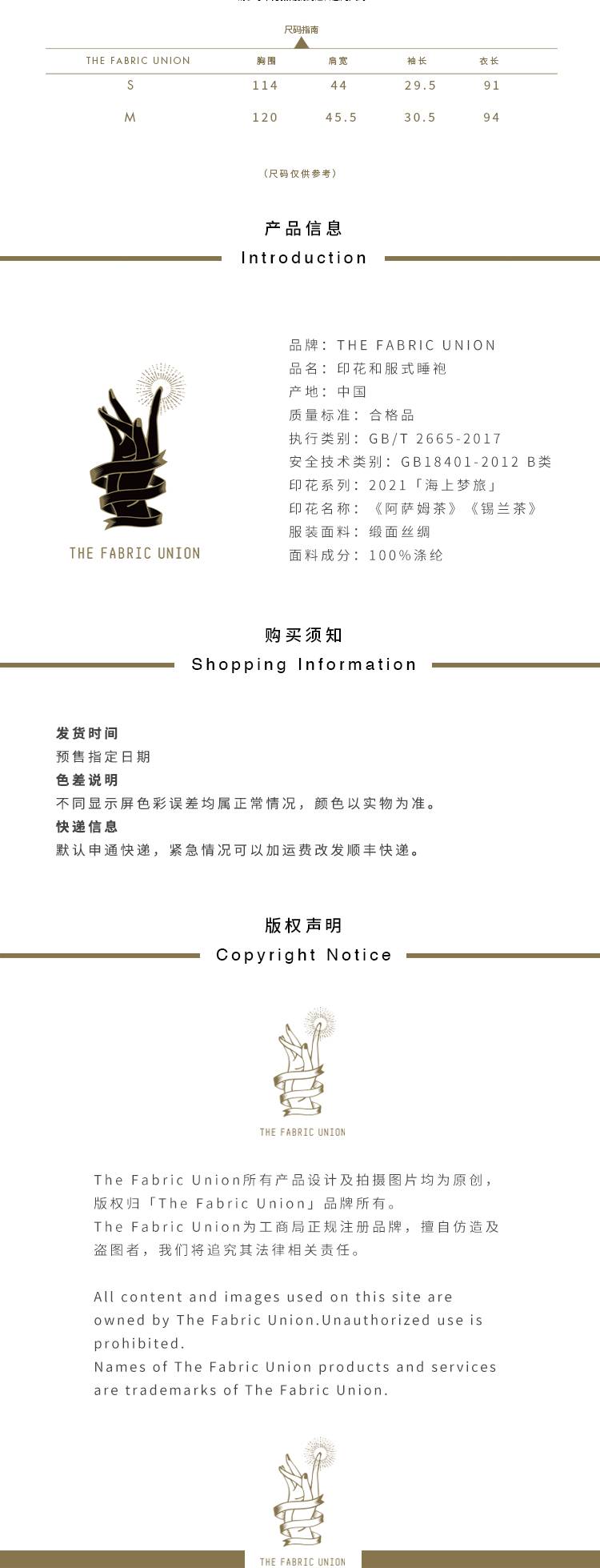 THE FABRIC UNION「海上梦旅」系列服装 印花和服式睡袍