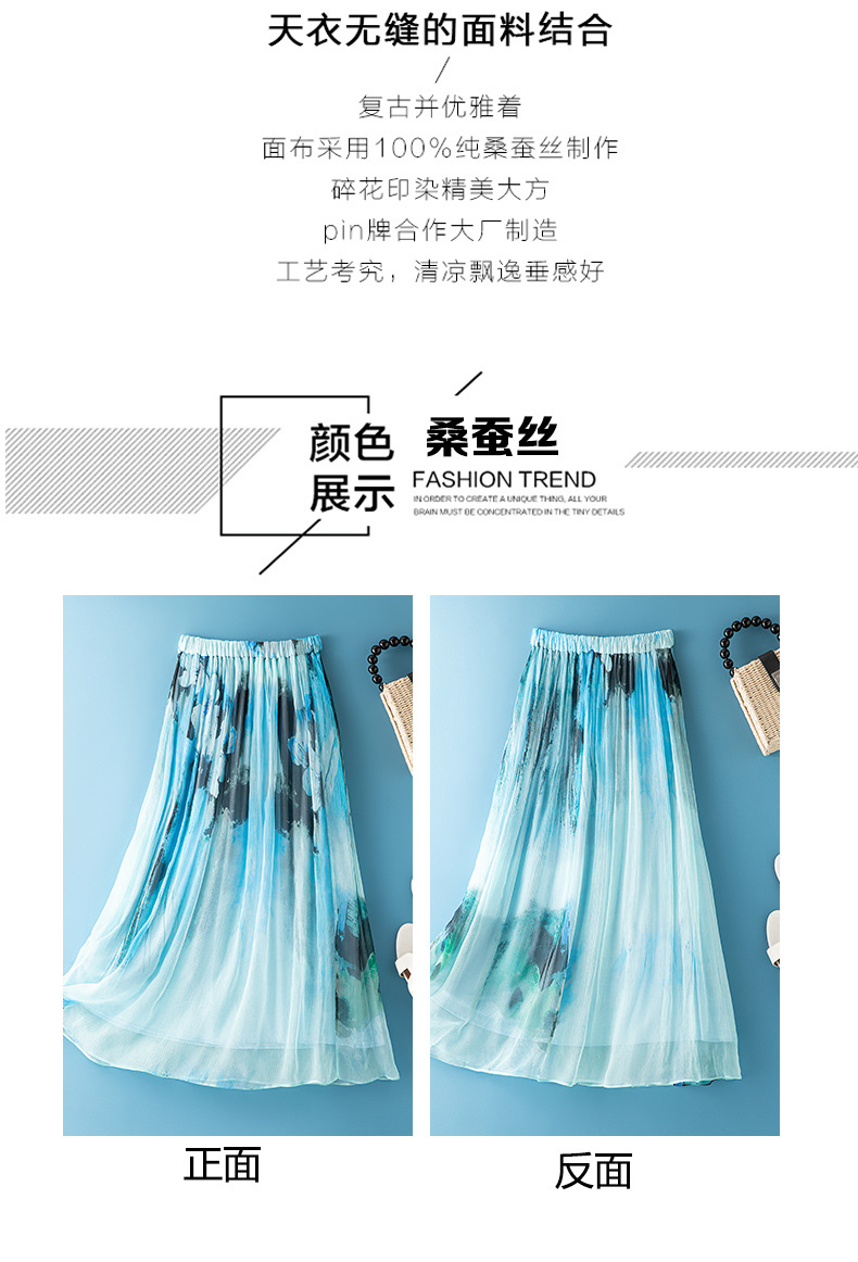 丁摩真丝半身裙女春季新款时尚洋气a字高腰显瘦桑蚕丝波西米亚旅游AL6659