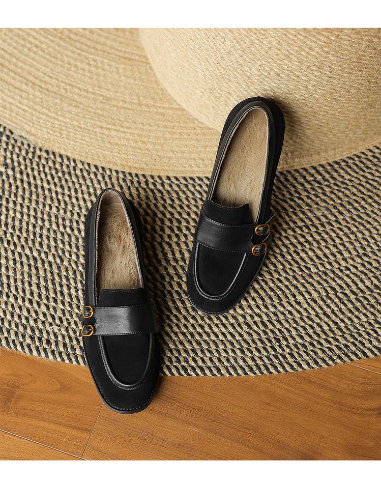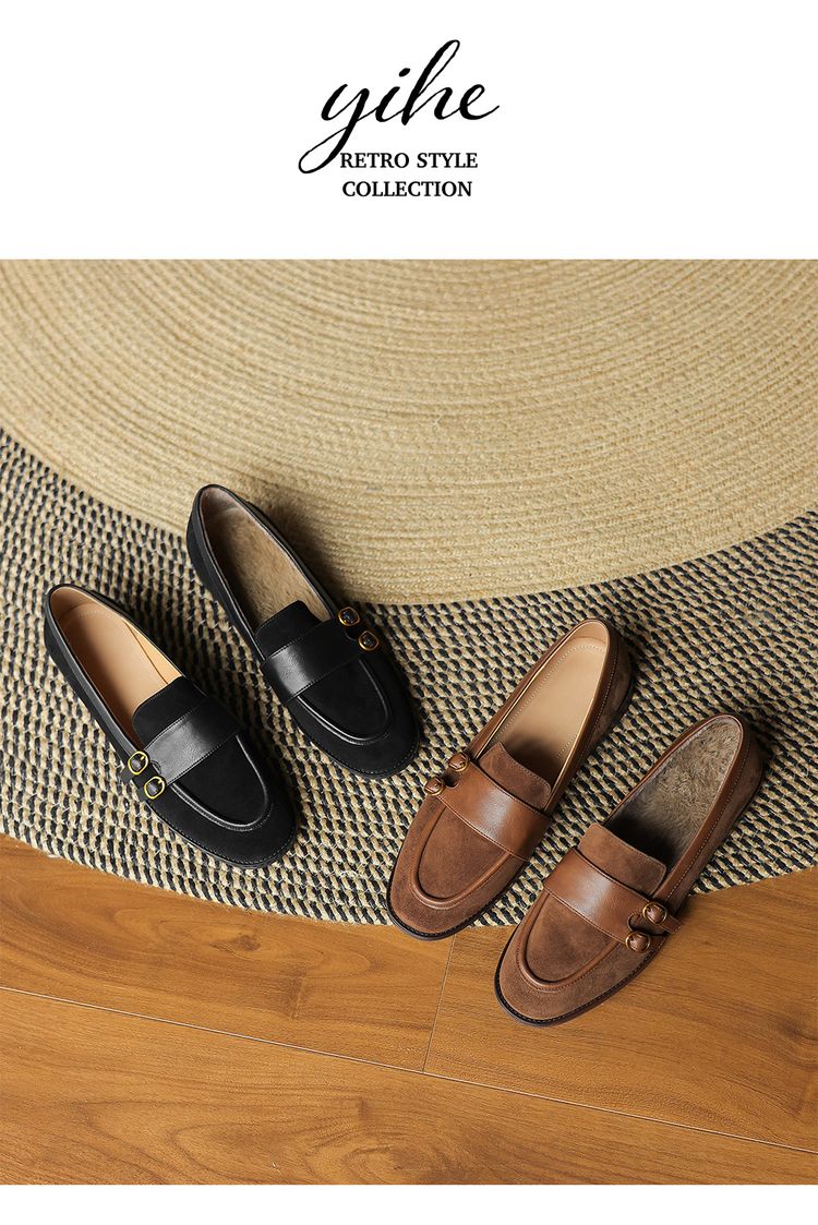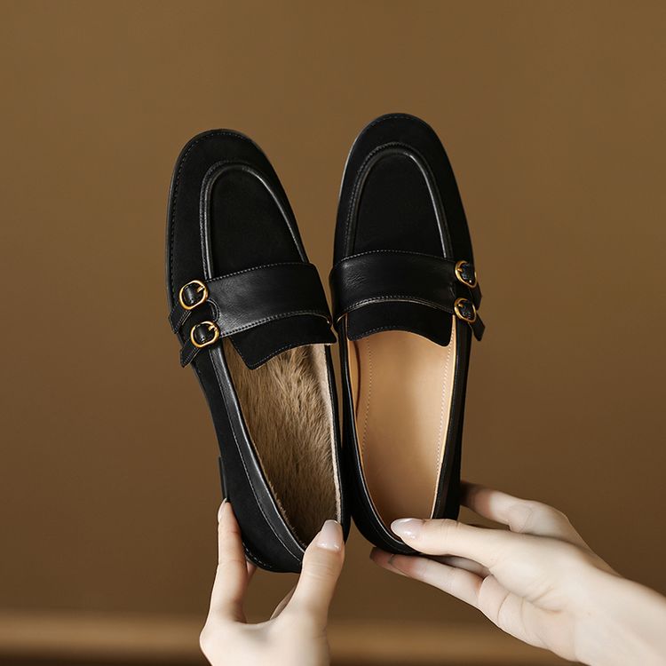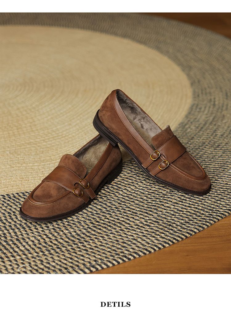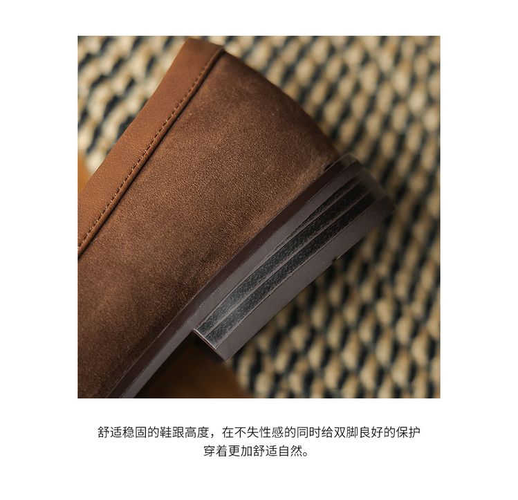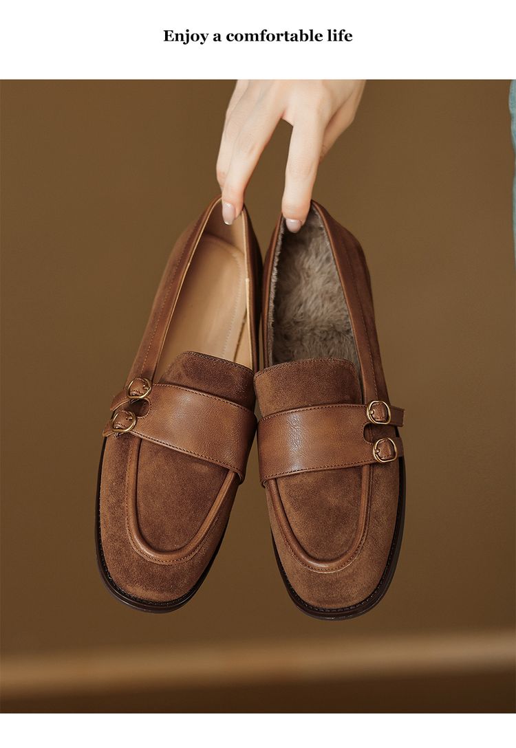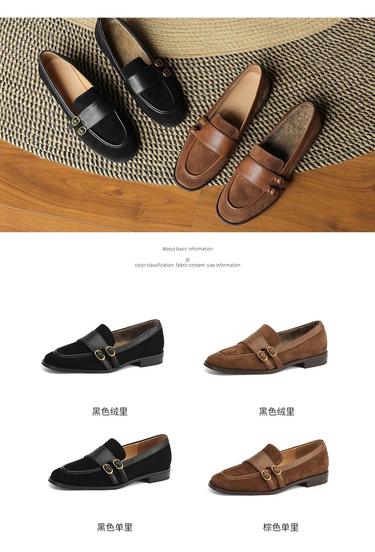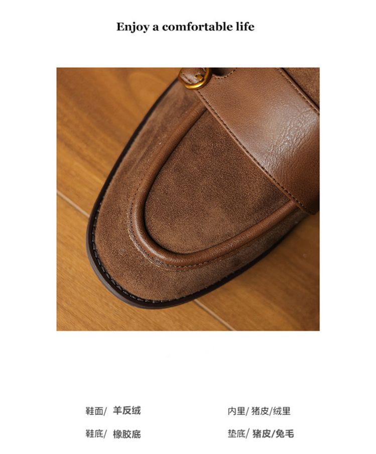 【预售5天】冬季新款加绒保暖毛毛鞋兔毛鞋垫,英伦风中跟小皮鞋羊反绒乐福鞋NGMZR&72-10